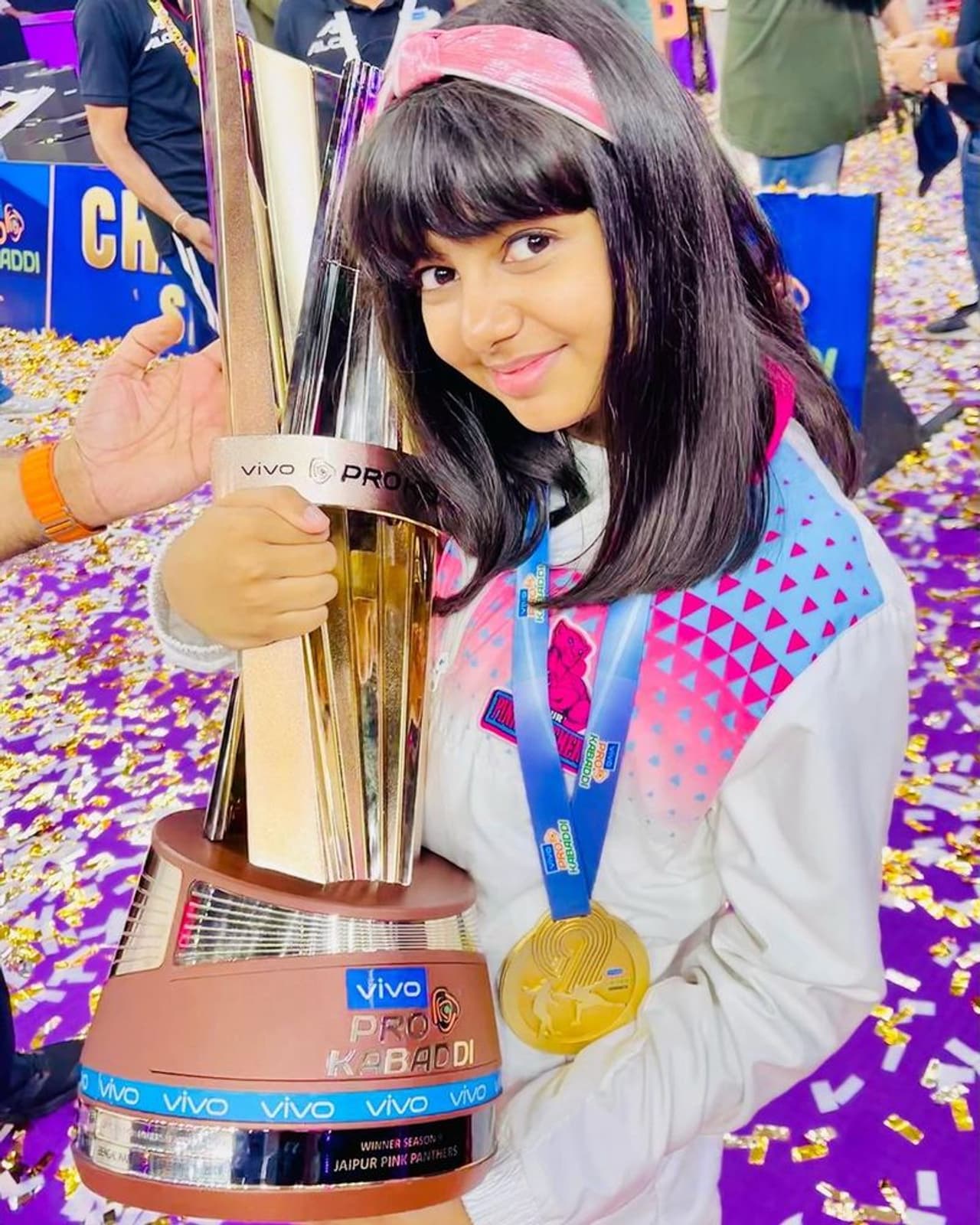 ಆರಾಧ್ಯಾ ಬಚ್ಚನ್ ಪ್ರೋ ಕಬಡ್ಡಿ ಟ್ರೋಫಿ ಹಿಡಿದು ಕ್ಯಾಮರಾಗೆ ಪೋಸ್ ನೀಡಿದರು. ತಮ್ಮ ತಂಡ ಗೆಲುವು ದಾಖಲಿಸಿದ ಖುಷಿಯನ್ನು ಐಶ್ವರ್ಯಾ ರೈ ಸಾಮಾಜಿಕ ಜಾಲತಾಣದಲ್ಲಿ ಬರೆದುಕೊಂಡಿದ್ದಾರೆ. ಒಂದಿಷ್ಟು ಫೋಟೋಗಳನ್ನು ಶೇರ್ ಮಾಡಿದ್ದಾರೆ.