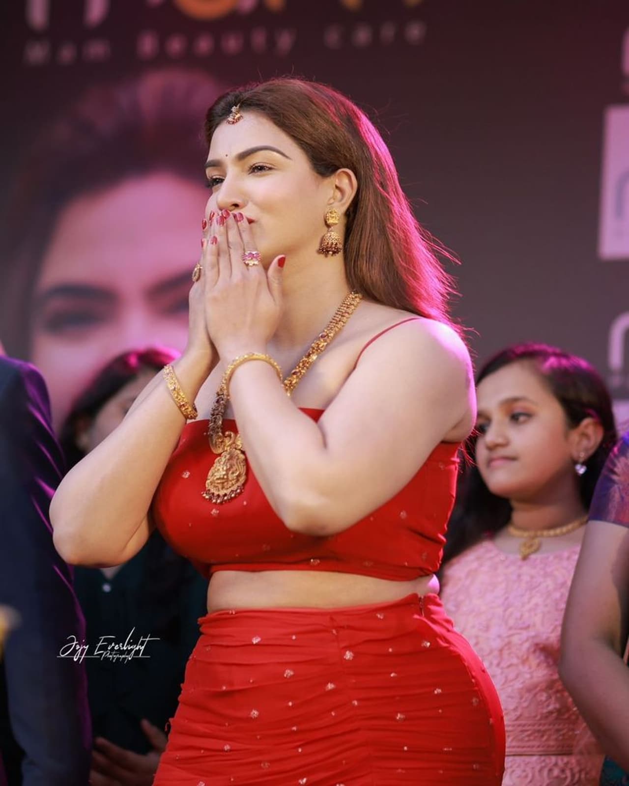 ಇತ್ತೀಚೆಗೆ ಹನಿ ರೋಸ್ ಆಭರಣ ಶೋರೂಮ್ ಅನ್ನು ಪ್ರಾರಂಭಿಸಿದ್ದಾರೆ. ಅಲ್ಲಿ ರೆಡ್ ಫ್ಲೋರ್ ಲೆಂಗ್ತ್ ರೆಡ್ ಸ್ಕರ್ಟ್ ಜೊತೆಗೆ ಸ್ಲೀವ್ ಲೆಸ್ ರೆಡ್ ಬ್ಲೌಸ್ ಧರಿಸಿ ಮಿಂಚುತ್ತಿದ್ರು. ಹನಿ ರೋಸ್ ಬ್ಯೂಟಿ ನೋಡಿ ಫ್ಯಾನ್ಸ್ ಫಿದಾ ಆಗಿದ್ದಾರೆ.