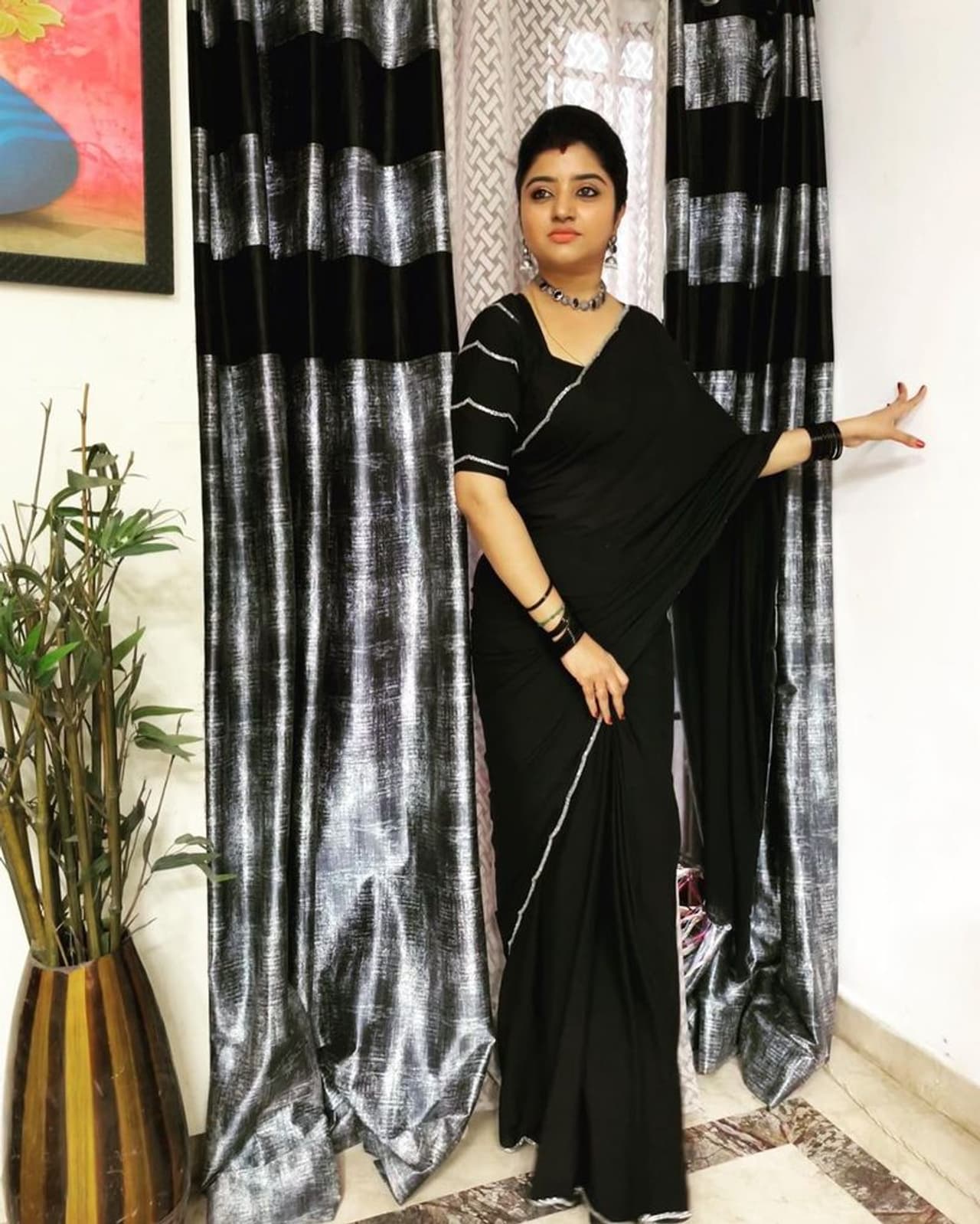 ನಿರೂಪಕಿ ಮಹಾಲಕ್ಷ್ಮಿ ಕಪ್ಪು ಬಣ್ಣದ ಸೀರೆಯುಟ್ಟು ಆಕ್ಸೈಡ್ ಜ್ಯುವೆಲ್ಲರಿಗಳನ್ನು ಧರಿಸಿ ಸಖತ್ತಾಗಿ ಕಾಣಸಿಕೊಂಡಿದ್ದಾರೆ. ಅತ್ತ ಗಂಡ ಜೈಲಿನಲ್ಲಿದ್ದರೆ ಇತ್ತ ಮಹಾಲಕ್ಷ್ಮಿ ಅವರು ಸೀರೆಯುಟ್ಟು ಫೋಟೋಗೆ ಭರ್ಜರಿ ಪೋಸ್ ಕೊಟ್ಟಿದ್ದಾರೆ.
