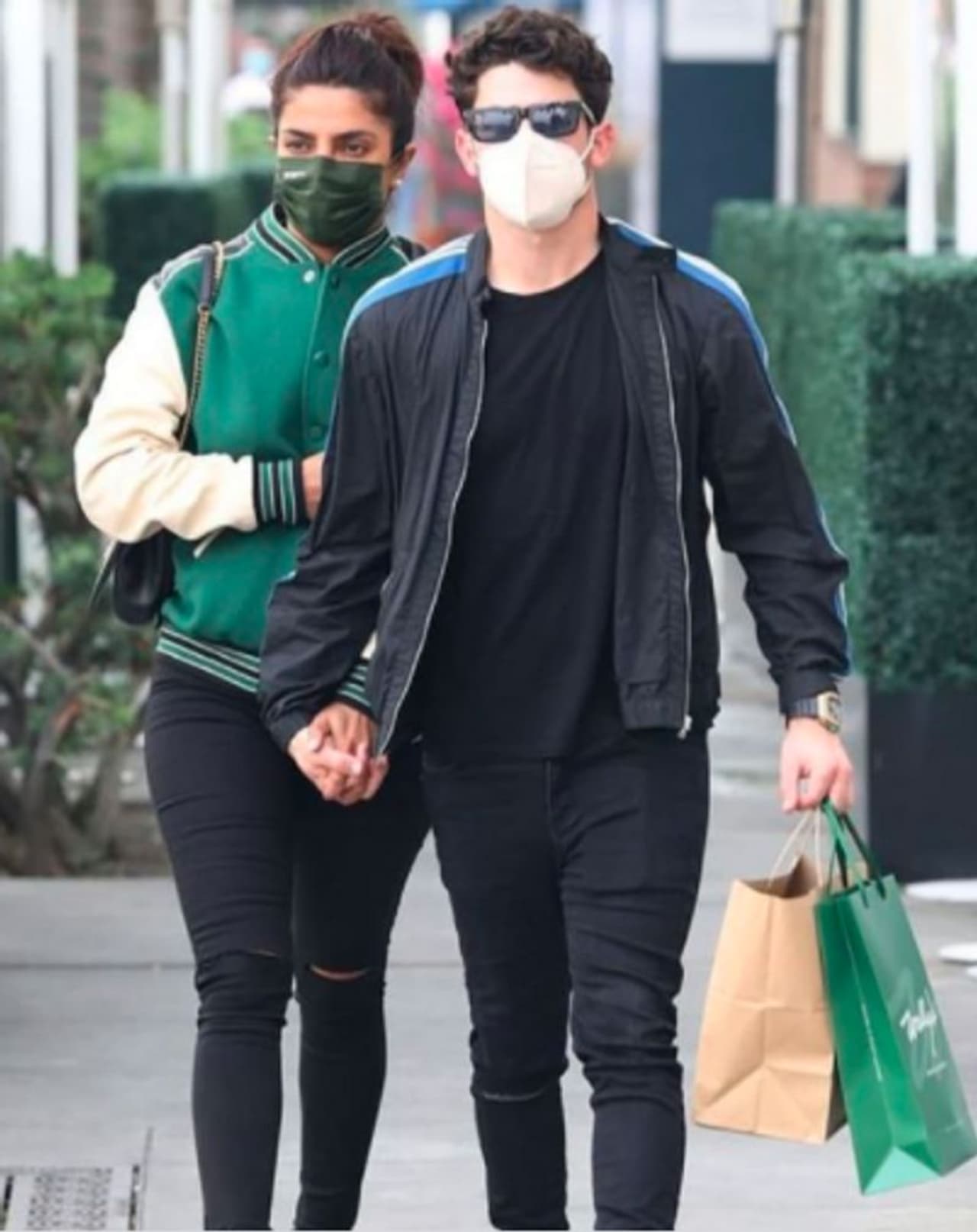 ಲಾಸ್ ಏಂಜಲೀಸ್ನ ಬೀದಿಗಳಲ್ಲಿ ನಿಕ್ ಜೊತೆ ಕೈಜೋಡಿಸಿಕೊಂಡು ಹೆಜ್ಜೆ ಹಾಕಿದ್ದಾರೆ. ಪ್ರಿಯಾಂಕಾ ಸ್ಕಿನ್ನಿ ಡೆನಿಮ್ನೊಂದಿಗೆ ಅಮೇರಿಕನ್ ವಾರ್ಸಿಟಿ ಜಾಕೆಟ್ ಅನ್ನು ಧರಿಸಿದ್ದರು. ಕಪ್ಪು ಬಣ್ಣದ ಉಡುಪಿನಲ್ಲಿ ನಿಕ್ ಸ್ಟೈಲಾಗಿ ಕಾಣುತ್ತಿದ್ದರು.