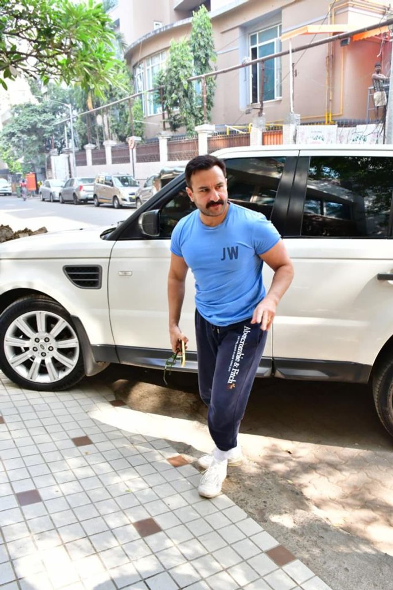 ನೀಲಿ ಬಣ್ಣದ ಟೀ-ಶರ್ಟ್ ಮತ್ತು ಬ್ಲ್ಯಾಕ್ ಟ್ರ್ಯಾಕ್ ಪ್ಯಾಂಟಲ್ಲಿ ತುಂಬಾನೇ ಸಿಂಪಲ್ ಅಗಿ ಕಾಣಿಸಿಕೊಂಡಿರುವ ಸೈಫ್. ಬ್ಲ್ಯಾಕ್ ಗ್ಲಾಸ್ ಒಂದು ಕೈಯಲ್ಲಿ ಹಳದಿ ಬಣ್ಣದ ಪ್ಯಾನಲ್ ಹೊಂದಿರುವ ಫೋನ್ ಹಿಡಿದುಕೊಂಡು ಕ್ಯಾಮೆರಾ ಕಣ್ಣಿಗೆ ಕಾಣಿಸಿಕೊಂಡಿದ್ದಾರೆ.