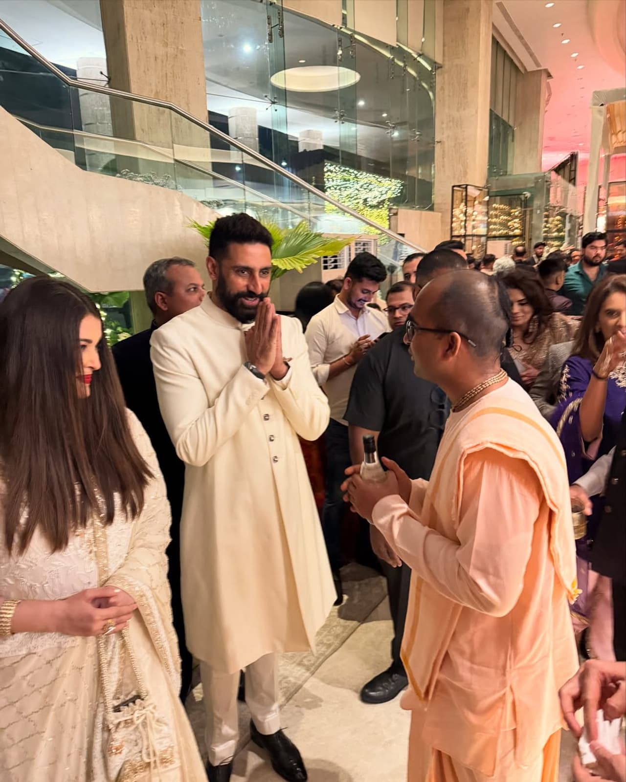 ಅಭಿಷೇಕ್ ಮತ್ತು ಐಶ್ವರ್ಯಾ ರೈ ಬಚ್ಚನ್ ಅವರೊಂದಿಗೆ ವೃಂದಾವನ ಧಾಮದ ಆಶೀರ್ವಾದ ಪಡೆಯಲು ಸಂತೋಷವಾಗುತ್ತಿದೆ ಎಂದು ಹರಿನಾಮ ದಾಸ್ ಬರೆದಿದ್ದಾರೆ. ಅಶುತೋಷ್ ಗೋವಾರಿಕರ್ ಅವರ ಮಗನ ಮದುವೆ ಆರತಕ್ಷತೆಯಲ್ಲಿ ಭಾಗವಹಿಸಲು ಬಂದಾಗ ಈ ಫೋಟೋಗಳನ್ನು ತೆಗೆಯಲಾಗಿದೆ.