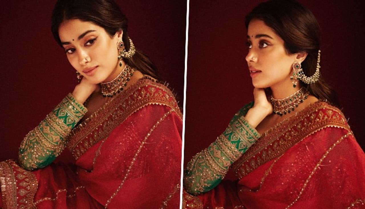 ನಟಿ ಜಾನ್ವಿ ಕಪೂರ್ ಇತ್ತೀಚೆಗೆ ಅದ್ಭುತ ಕಡುಗೆಂಪು ಸೀರೆಯುಟ್ಟು ಕಾರ್ಯಕ್ರಮವೊಂದರಲ್ಲಿ ಭಾಗವಹಿಸಿದ್ದರು. 1.15 ಲಕ್ಷ ರೂ.ಮೊಲ್ಯದ ಆರ್ಗನ್ಜಾ ಸೀರೆಯಲ್ಲಿ ಬೆರಗುಗೊಳಿಸುವಂತೆ ಕಾಣುತ್ತಿದ್ದರು ಬಾಲಿವುಡ್ ಎವರ್ಗ್ರೀನ್ ಬ್ಯೂಟಿ ಶ್ರೀದೇವಿ ಮಗಳು. 46,500 ರೂ.ಬೆಲೆಯ ಟೀಲ್ ಬ್ಲೌಸ್ಸಹ ಅದ್ಭುತವಾಗಿತ್ತು.
