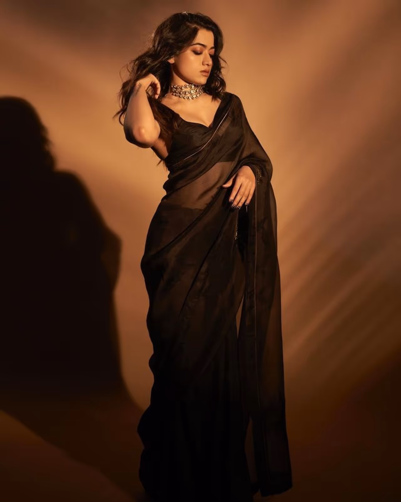 ನ್ಯಾಷನಲ್ ಕ್ರಶ್ ಎಂದೇ ಖ್ಯಾತಿಯಾಗಿರುವ ಕನ್ನಡದ ಕುವರಿ ರಶ್ಮಿಕಾ ಮಂದಣ್ಣ ಕೂಡ ಬ್ಲ್ಯಾಕ್ ಸೀರೆಯುಟ್ಟು ಹಾಟ್ ಪೋಟೋಶೂಟ್ ಮಾಡಿಸಿಕೊಂಡಿದ್ದಾಳೆ. ಅಭಿಮಾನಿಗಳು ಪೋಸ್ ಚೆನ್ನಾಗಿದೆ ನಿಮ್ಮ- ದೇವರಕೊಂಡ ಲವ್ ನಿಜಾನಾ ಎಂದು ಕೇಳುತ್ತಿದ್ದಾರೆ.