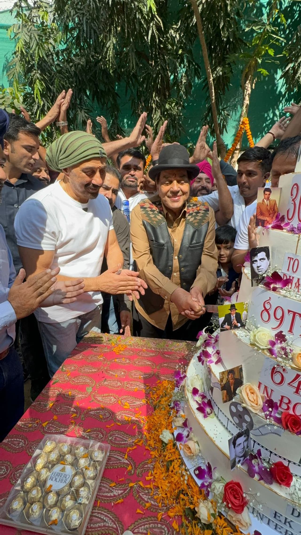 ಕೇಕ್ ಕತ್ತರಿಸಿದ ನಂತರ ಧರ್ಮೇಂದ್ರ ಅವರ ಅಭಿಮಾನಿಗಳು ಅವರಿಗೆ ಶುಭಾಶಯಗಳನ್ನು ತಿಳಿಸಿದರು ಮತ್ತು ಅವರೊಂದಿಗೆ ಫೋಟೋ ತೆಗೆಸಿಕೊಂಡರು.