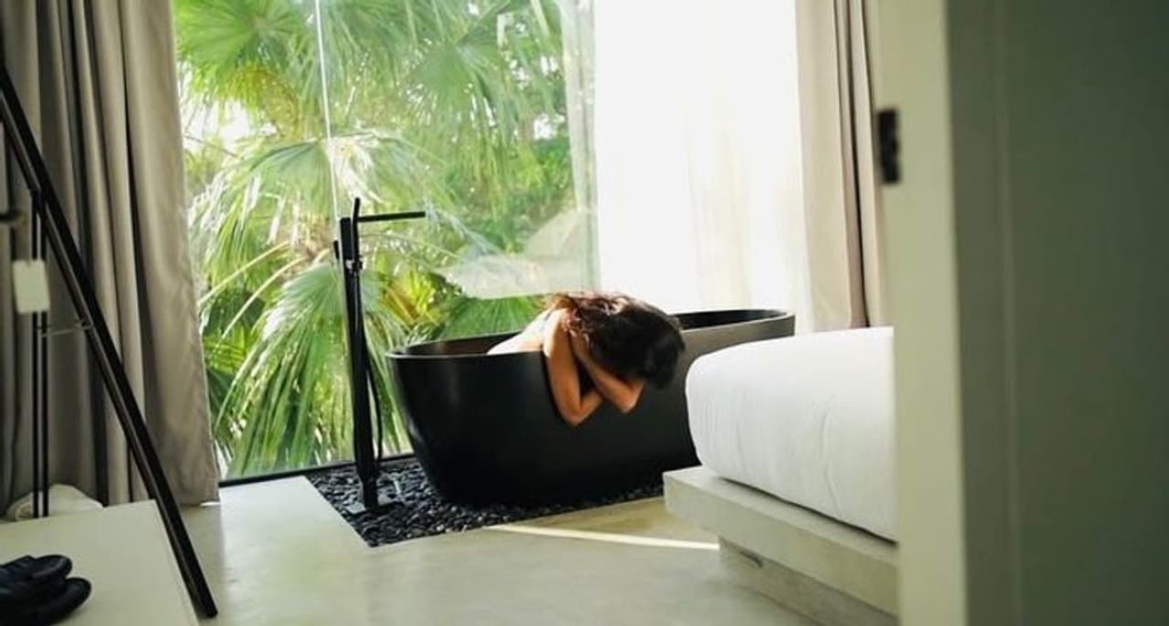 ಹಿಂಭಾಗದ ಫೋಟೋಗಳನ್ನು ಹಂಚಿಕೊಂಡಿದ್ದಾರೆ. ಇದರ ಜೊತೆಗೆ ಟಬ್ನಲ್ಲಿರುವ ಫೋಟೋ, ಜೊತೆಗೆ ಮುಖದ ಕ್ಲೋಸ್ ಅಪ್ ಫೋಟೋಗಳನ್ನು ಹಂಚಿಕೊಂಡಿದ್ದಾರೆ.
