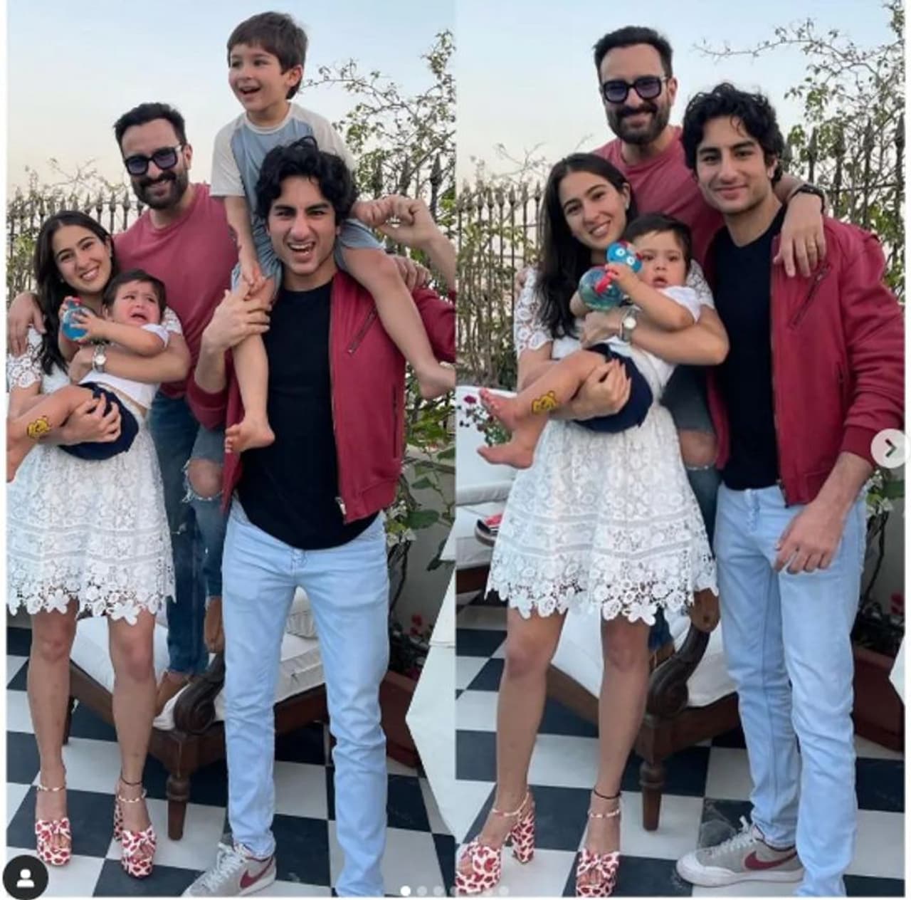 ಫೋಟೋವೊಂದರಲ್ಲಿ, ಒಂದು ವರ್ಷದ ಜೆಹ್ ತನ್ನ ಅಕ್ಕ ಸಾರಾ ಅಲಿ ಖಾನ್ ಅವರ ಮಡಿಲಲ್ಲಿ ಕಾಣಿಸಿಕೊಂಡಿದ್ದಾನೆ. ಈ ಸಮಯದಲ್ಲಿ, ತಂದೆ ಸೈಫ್ ಮತ್ತು ಹಿರಿಯ ಸಹೋದರ ಇಬ್ರಾಹಿಂ ಅಲಿ ಖಾನ್ ಅವರೊಂದಿಗೆ ಮಾತನಾಡುತ್ತಿರುವುದು ಕಂಡುಬರುತ್ತದೆ.