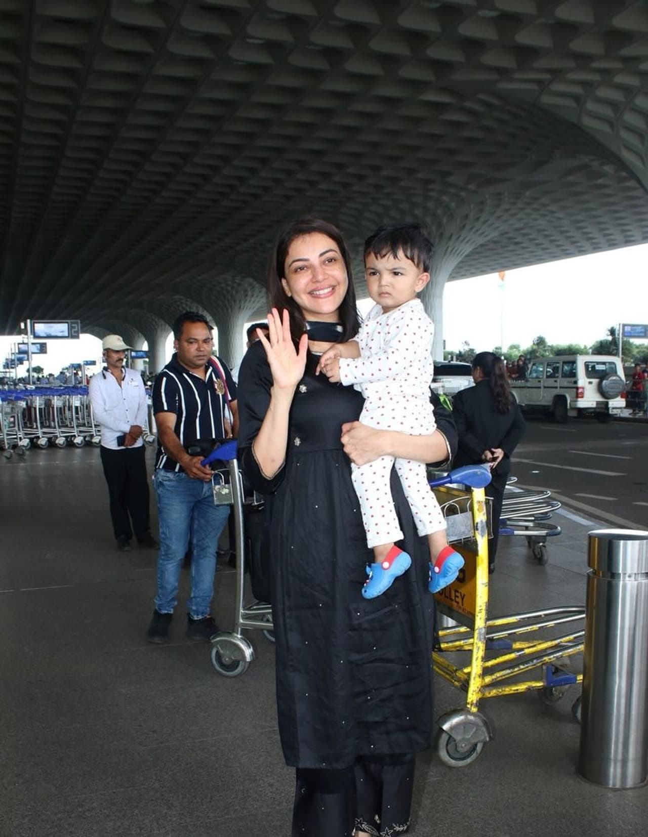 ಕಪ್ಪು ಬಣ್ಣದ ಸೆಲ್ವಾರ್ ಧರಿಸಿರುವ ಕಾಜಲ್ ಕಪ್ಪು ಬಣ್ಣದ ಟಾಮಿ ಬ್ರ್ಯಾಂಡ್ ಬ್ಯಾಗ, ಮೊಬೈಲ್ ಮತ್ತು ಮಗನನ್ನು ಹಿಡಿದುಕೊಂಡು ಎಂಟ್ರಿ ಕೊಟ್ಟಿದ್ದಾರೆ.