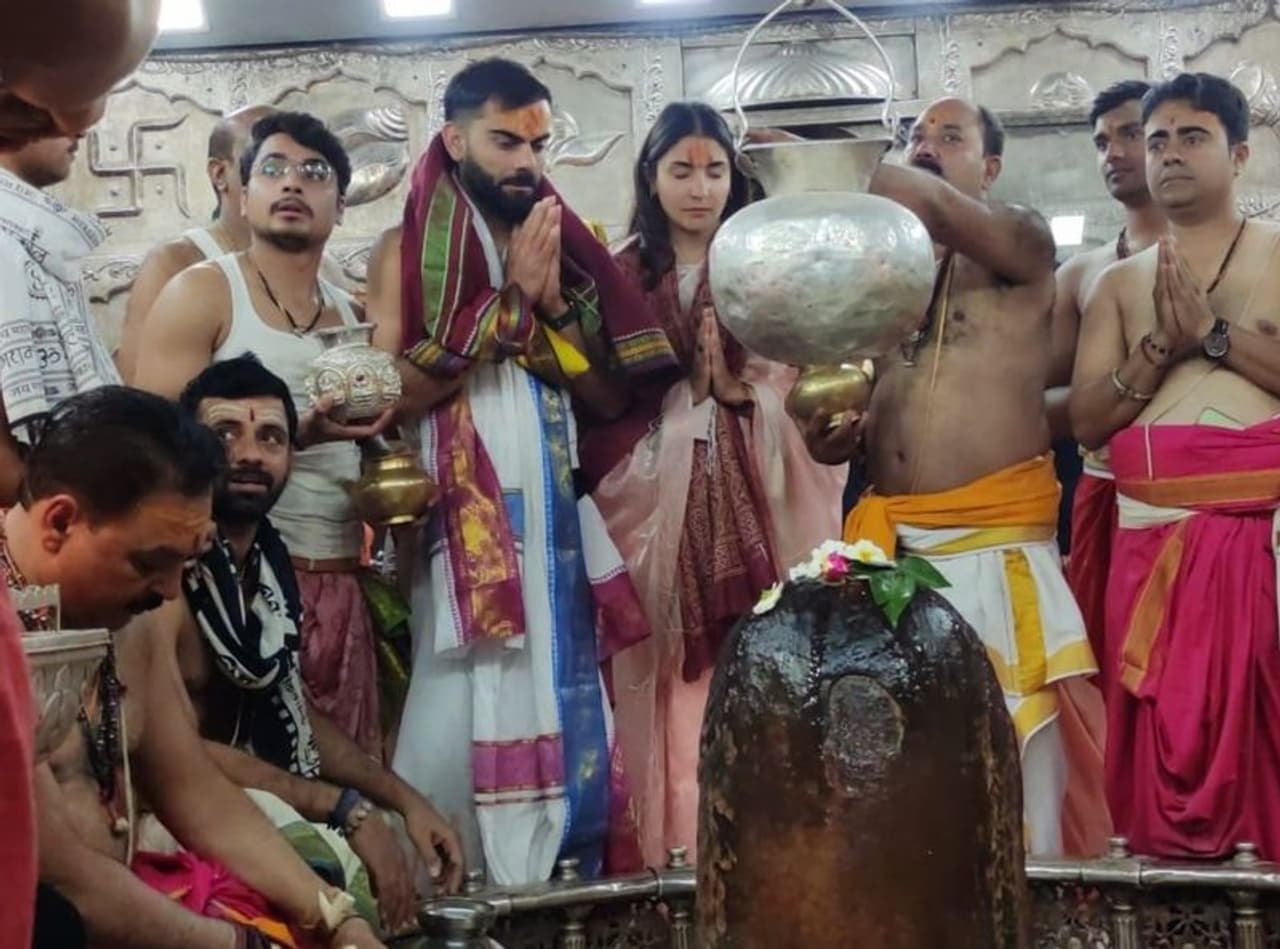 ಆಸ್ಟ್ರೇಲಿಯಾ ವಿರುದ್ಧದ ನಾಲ್ಕನೇ ಟೆಸ್ಟ್ ಪಂದ್ಯಕ್ಕೂ ಮುನ್ನ ವಿರಾಟ್ ಕೊಹ್ಲಿ ಮತ್ತು ಅನುಷ್ಕಾ ಶರ್ಮಾ ಮಧ್ಯಪ್ರದೇಶದ ಉಜ್ಜೈನ್ನಲ್ಲಿರುವ ಮಹಾಕಾಳೇಶ್ವರ ದೇವಸ್ಥಾನಕ್ಕೆ ಭೇಟಿ ನೀಡಿದರು.