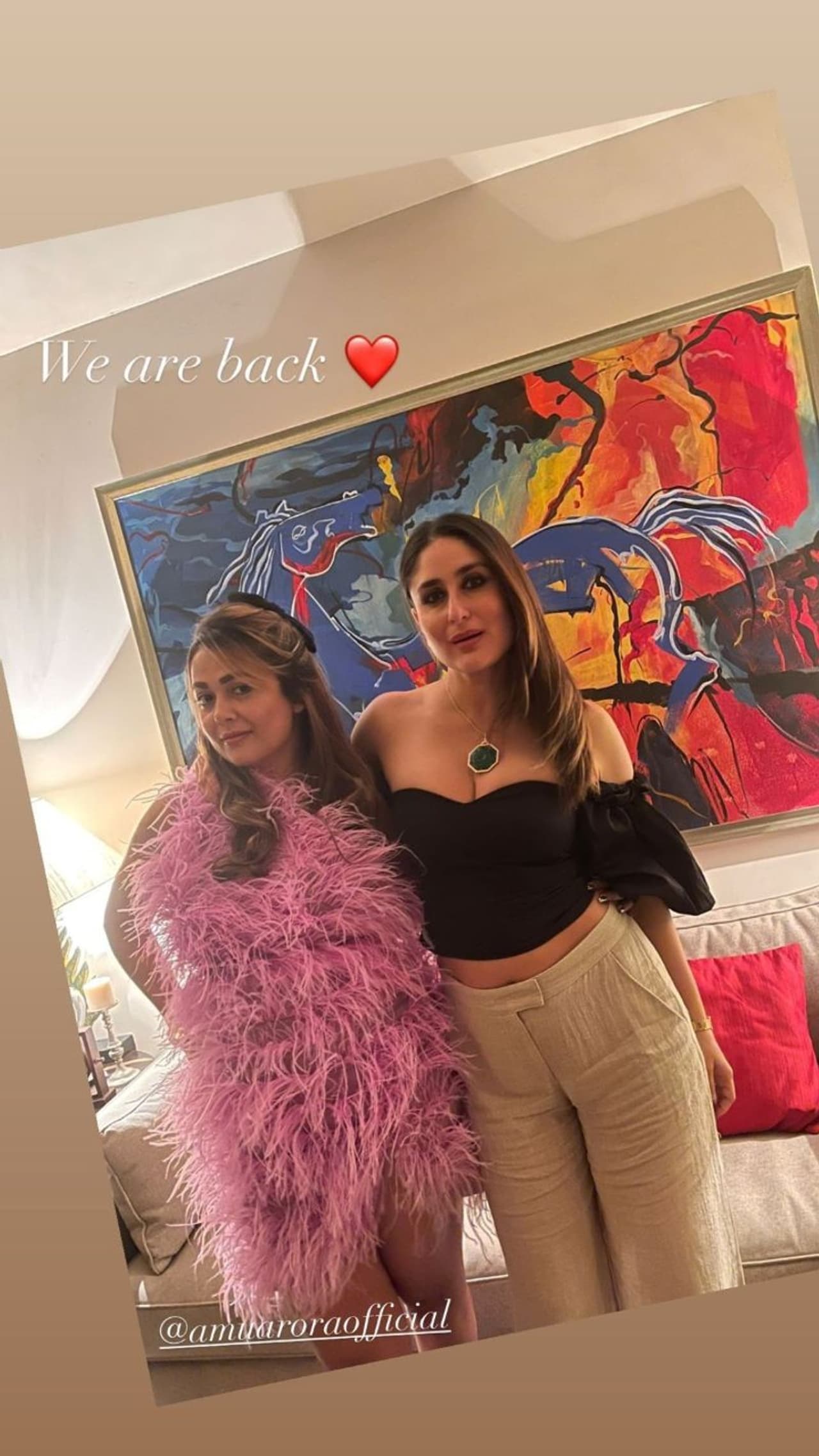 ಕರೀನಾ ಕಪೂರ್ ಅಮೃತಾ ಅರೋರಾ ಅವರು ಕರಿಷ್ಮಾ ಕಪೂರ್ ಪಾರ್ಟಿಯಲ್ಲಿ ಹಾಜರಾಗಿದ್ದರು. ಈ ಸಮಯದ ಕರೀನಾ ಕಪೂರ್ ಮತ್ತು ಅಮೃತಾ ಅರೋರಾ ಅವರ ಫೋಟೋ ಸೋಶಿಯಲ್ ಮೀಡಿಯಾದಲ್ಲಿ ಕಾಣಿಸಿಕೊಂಡಿವೆ.