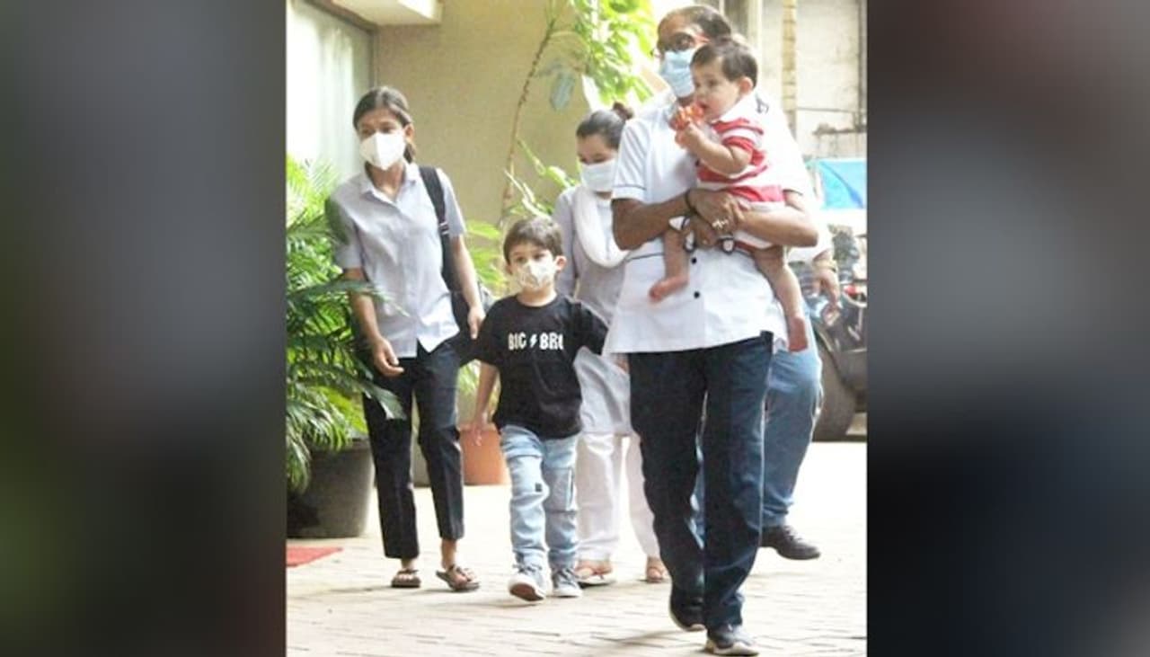 ಕರೀನಾ ಕಪೂರ್ ಪುತ್ರರಾದ ತೈಮೂರ್ ಅಲಿ ಖಾನ್ ಜೆಹ್ ಅಲಿ ಖಾನ್ ಅಪ್ಪ ಅಮ್ಮ ಜೊತಗೆ ಇಲ್ಲದೆ ಮನೆ ಹೊರೆಗೆ ಕಾಣಿಸಿಕೊಂಡಿದ್ದಾರೆ. ಕರೀನಾ ಸೈಫ್ ಮಕ್ಕಳಿಬ್ಬರೂ ನ್ಯಾನಿ ಜೊತೆ ತಿರುಗುತ್ತಿರುವ ಪೋಟೋಗಳು ವೈರಲ್ ಆಗಿವೆ. ಫೋಟೋದಲ್ಲಿ ತೈಮೂರ್ ಕಪ್ಪು ಟೀ ಶರ್ಟ್ ಧರಿಸಿರುವುದನ್ನು ಕಾಣಬಹುದು ಹಾಗೂ ಅವನ ಟೀ ಶರ್ಟ್ ಮೇಲೆ ಬಿಗ್ ಬ್ರದರ್ ಎಂದು ಬರೆಯಲಾಗಿತ್ತು. ಅದೇ ಸಮಯದಲ್ಲಿ, ಜೆಹ್ ತನ್ನ ಬಾಯಿಯಲ್ಲಿ ಆಟದ ಸಾಮಾನು ಹಾಕಿಕೊಳ್ಳುತ್ತಿರುವುದನ್ನು ಕಾಣಬಹುದು.