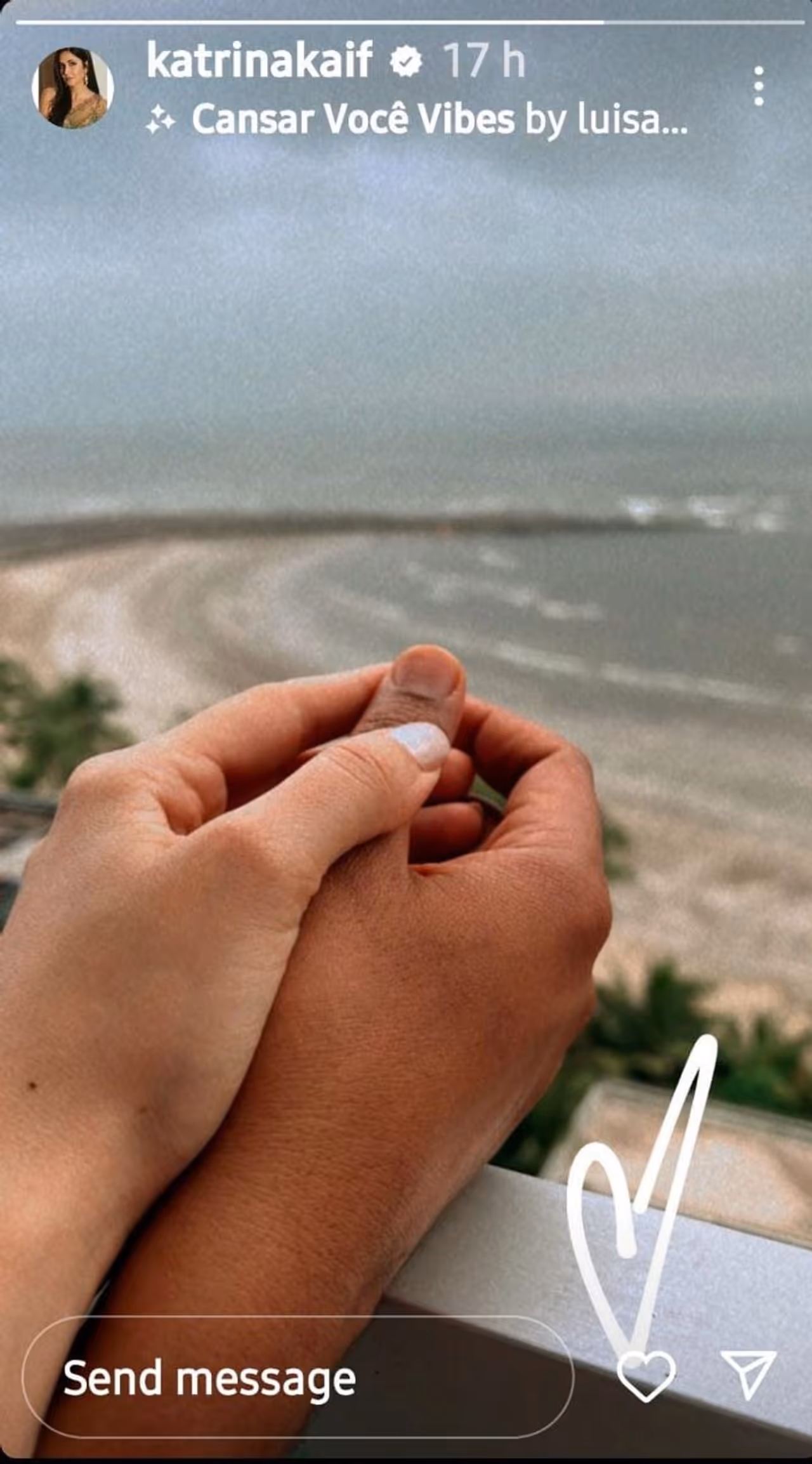 ಕತ್ರಿನಾ ಕೈಫ್ ತಮ್ಮ ಇನ್ಸ್ಟಾಗ್ರಾಮ್ ಸ್ಟೋರಿಯಲ್ಲಿ ಒಂದು ಕ್ಯೂಟ್ ರೊಮ್ಯಾಂಟಿಕ್ ಫೋಟೋವನ್ನು ಶೇರ್ ಮಾಡಿದ್ದಾರೆ. ಅದರಲ್ಲಿ ಅವರು ಮತ್ತು ವಿಕ್ಕಿ ತಮ್ಮ ಕೈಗಳನ್ನು ಒಟ್ಟಿಗೆ ಹಿಡಿದು, ಮಾನ್ಸೂನ್ ವೆದರ್ ಎಂಜಾಯ್ ಮಾಡುತ್ತಿದ್ದಾರೆ