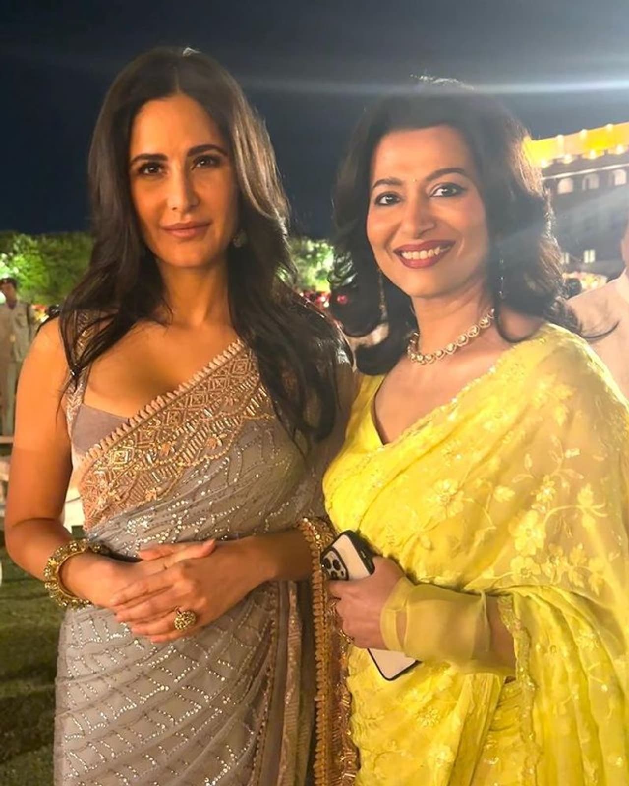 ಕತ್ರಿನಾ ಕೈಫ್ ಬೆಳ್ಳಿಯ ಬೂದು ಬಣ್ಣದ ಸೀರೆ ಧರಿಸಿದ್ದು ಅದರ ಜೊತೆ ಸ್ಟೈಲಿಶ್ ಬ್ಲೌಸ್ ಪೇರ್ ಮಾಡಿಕೊಂಡಿದ್ದಾರೆ ಮತ್ತು ಮಿನಿಮಮ್ ಮೇಕಪ್ ಧರಿಸಿದ್ದಾರೆ. ಫ್ಯಾಷನ್ ಡಿಸೈನರ್ ಪಂಕಜ್ ಜೋಹರ್ ಜೊತೆ ಫೋಟೋಗೆ ಪೋಸ್ ಕೊಟ್ಟಿದ್ದಾರೆ.