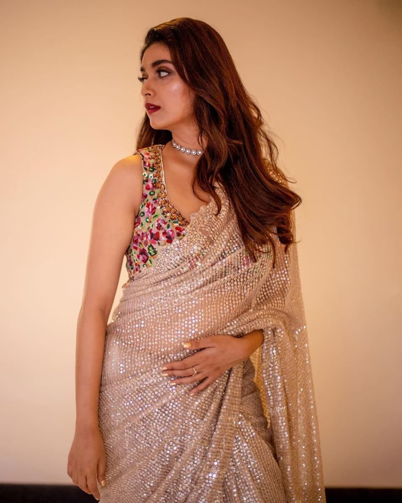 ಕೀರ್ತಿ ಆಗಾಗ ಸಾಂಪ್ರದಾಯಿಕ ಉಡುಗೆಯಲ್ಲಿ ಮಿಂಚುತ್ತಿರುತ್ತಾರೆ. ಇದೀಗ ಕೀರ್ತಿ ಸೀರೆ ಫೋಟೋ ಹಂಚಿಕೊಂಡಿದ್ದಾರೆ. ಕೀರ್ತಿಯ ಸೀರೆ ಫೋಟೋಗಳು ಸಾಮಾಜಿಕ ಜಾಲತಾಣದಲ್ಲಿ ವೈರಲ್ ಆಗಿವೆ.