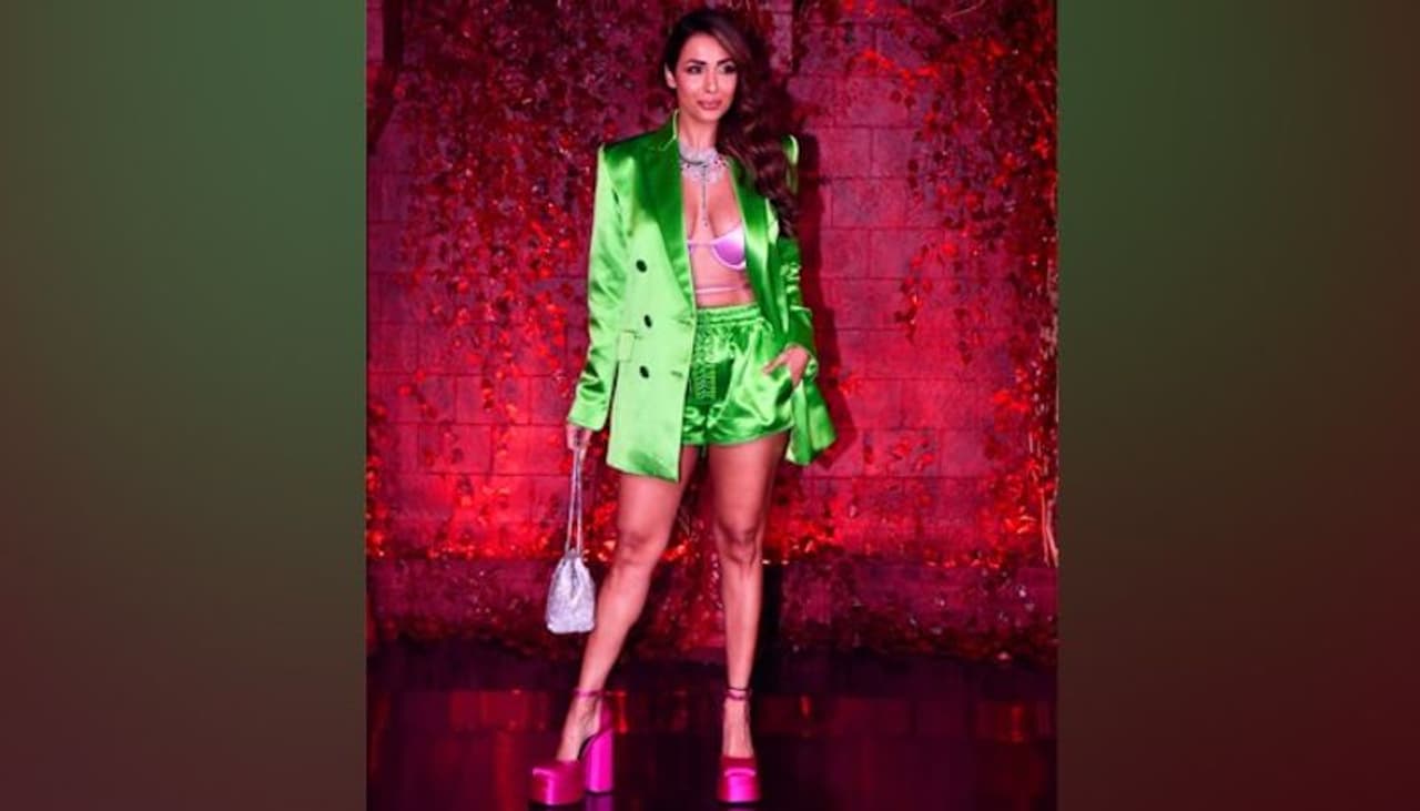ವಾಸ್ತವವಾಗಿ, ಕರಣ್ ಪಾರ್ಟಿಗಾಗಿ ಅಲೆಕ್ಸ್ ಪೆರಿಯ ಸ್ಪ್ರಿಂಗ್ ಸಮ್ಮರ್ 2022 ಸಂಗ್ರಹದಿಂದ ಮಲೈಕಾ ನಿಯಾನ್ ಹಸಿರು ಕಾಟನ್ ಮತ್ತು ಸಿಲ್ಕ್ ಮಿಶ್ರಿತ ಕಾರ್ಲ್ಟನ್ ಬ್ಲೇಜರ್ ಅನ್ನು ಧರಿಸಿದ್ದರು. ಇದರೊಂದಿಗೆ, ಮ್ಯಾಚಿಂಗ್ ಶಾರ್ಟ್ ಮತ್ತು ಬ್ರಾ ಧರಿಸಿದ್ದರು.