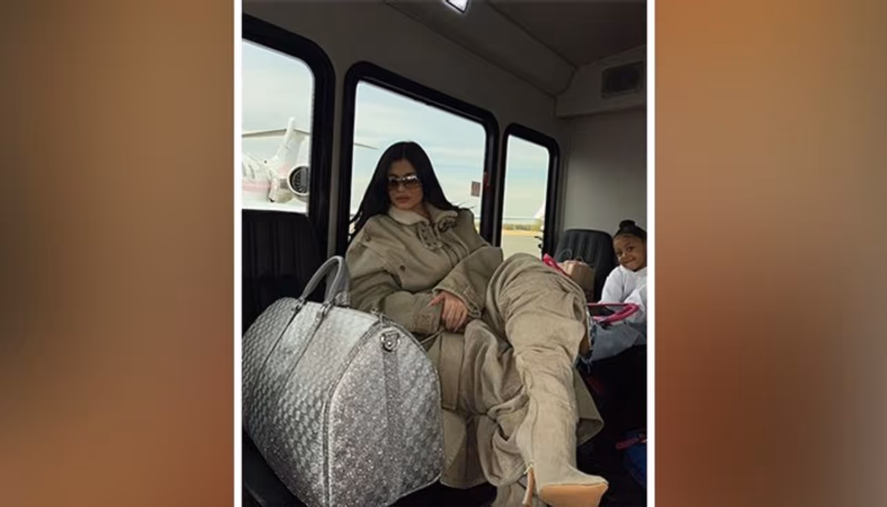 ಕೈಲಿ cosmetics ಮಾಲೀಕ ಕೈಲಿ ಕೈಯಲ್ಲಿ ಒಂದು ಸಿಲ್ವರ್ ಬಣ್ಣದ ಬ್ಯಾಗ್ನ ಕೂಡ ಕ್ಯಾರಿ ಮಾಡಿದ್ದಾರೆ. 'ನನ್ನ ಮಗಳು ನನ್ನ ಟ್ರ್ಯಾವಲ್ ಬಡ್ಡಿ' ಎಂದು ಬರೆದುಕೊಂಡಿದ್ದಾರೆ.