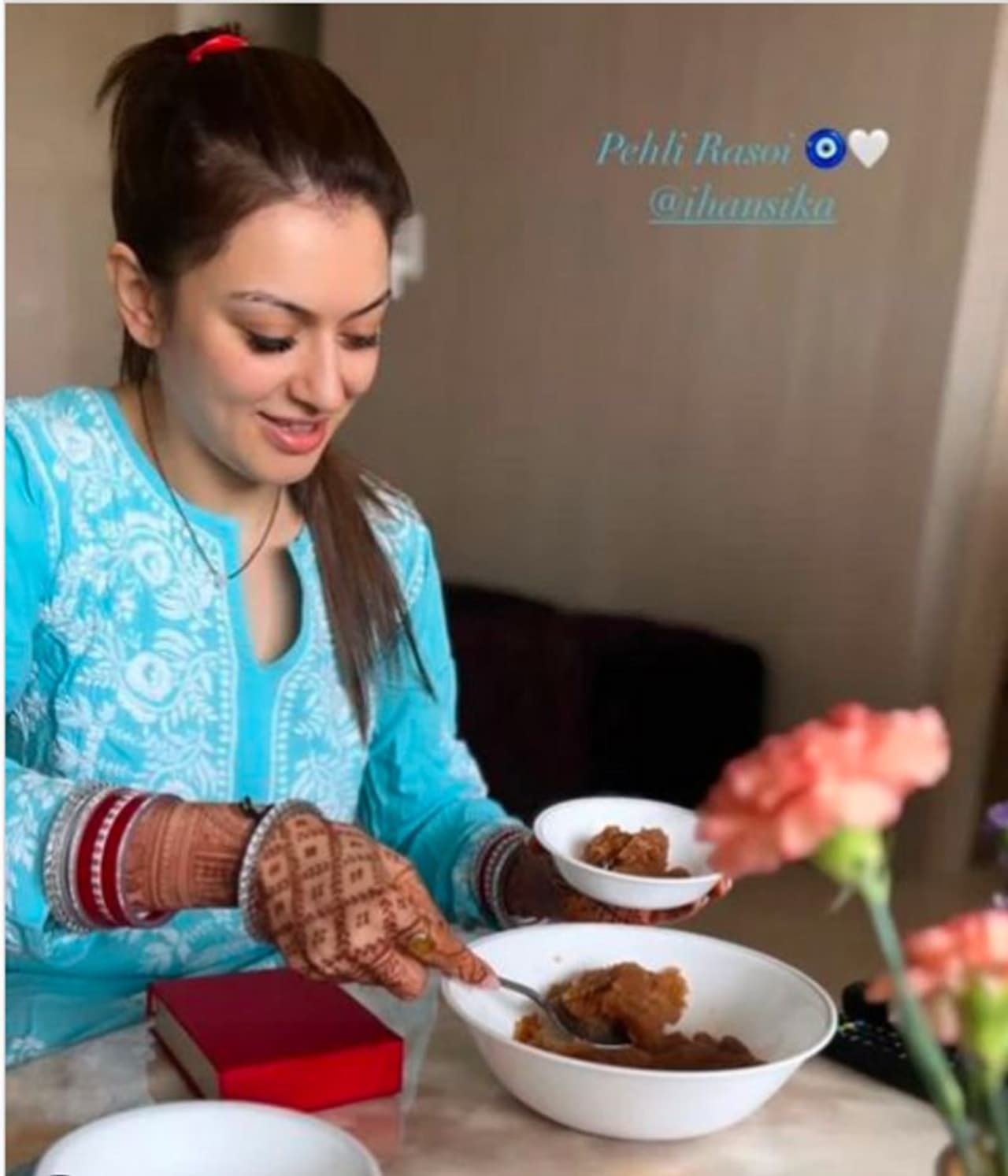 ಸದ್ಯ ಮದುವೆಯಾದ ಬಳಿಕ ಹನ್ಸಿಕಾ ಅಡುಗೆ ಮಾಡುವುದರಲ್ಲಿ ಬ್ಯುಸಿಯಾಗಿದ್ದಾರೆ. ಪತಿಗೆ ರುಚಿಯಾದ ಅಡುಗೆ ಮಾಡಿ ಬಡಿಸುತ್ತಿದ್ದಾರೆ. ಮದುವೆಯಾದ ಬಳಿಕ ಹನ್ಸಿಕಾ ಮಾಡಿದ ಅಡುಗೆ ಫೋಟೋವನ್ನು ಪತಿ ಸೊಹೇಲ್ ಸಾಮಾಜಿಕ ಜಾಲತಾಣದಲ್ಲಿ ಶೇರ್ ಮಾಡಿದ್ದಾರೆ.
