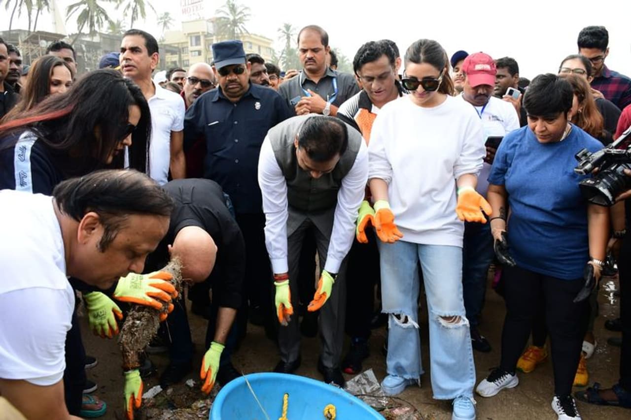 ಸೆಲೆಬ್ರಿಟಿಗಳು ಸೇರಿಕೊಂಡಿರುವುದು ಅಚ್ಚರಿ ಮೂಡಿಸಿದೆ. ಮುಂಬೈ ನಗರದ ಮೇಲಿನ ಪ್ರೀತಿಯನ್ನು ತೋರುತ್ತಿದೆ ಎಂದು ಅನೇಕರು ಕಾಮೆಂಟ್ ಮಾಡುತ್ತಿದ್ದಾರೆ. ಅಂದಹಾಗೆ ಬಾಲಿವುಡ್ ನಿಂದ ನಟಿ ಪರಿಣೀತಿ ಚೋಪ್ರಾ, ಅನುಪಮ್ ಖೇರ್ ಸೇರಿದಂತೆ ಅನೇಕ ಬಾಲಿವುಡ್ ಸ್ಟಾರ್ ಬೀಚ್ ಕ್ಲೀನ್ ನಲ್ಲಿ ಕಾಣಿಸಿಕಂಡಿದ್ದಾರೆ.