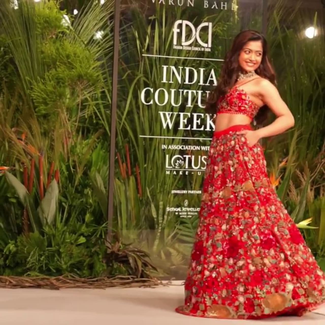 ರ್ಯಾಂಪ್ನಲ್ಲಿ, ರಶ್ಮಿಕಾ ಮಂದಣ್ಣ ಕೆಂಪು ಹೂವಿನ ಕಸೂತಿ ಲೆಹೆಂಗಾದಲ್ಲಿ ಮಿಂಚಿದ್ದಾರೆ. ತನ್ನ ಲುಕ್ ಪೂರ್ಣಗೊಳಿಸಲು, ಅವಳು ಬೆಳ್ಳಿಯ ಬಣ್ಣದ ಭಾರೀ ಚೋಕರ್ ಅನ್ನು ಧರಿಸಿದ್ದರು. ನಟಿಯ ಸಿಂಪಲ್ ಸ್ಟೈಲ್ ಅನ್ನು ಜನರು ಇಷ್ಟಪಟ್ಟಿದ್ದಾರೆ
