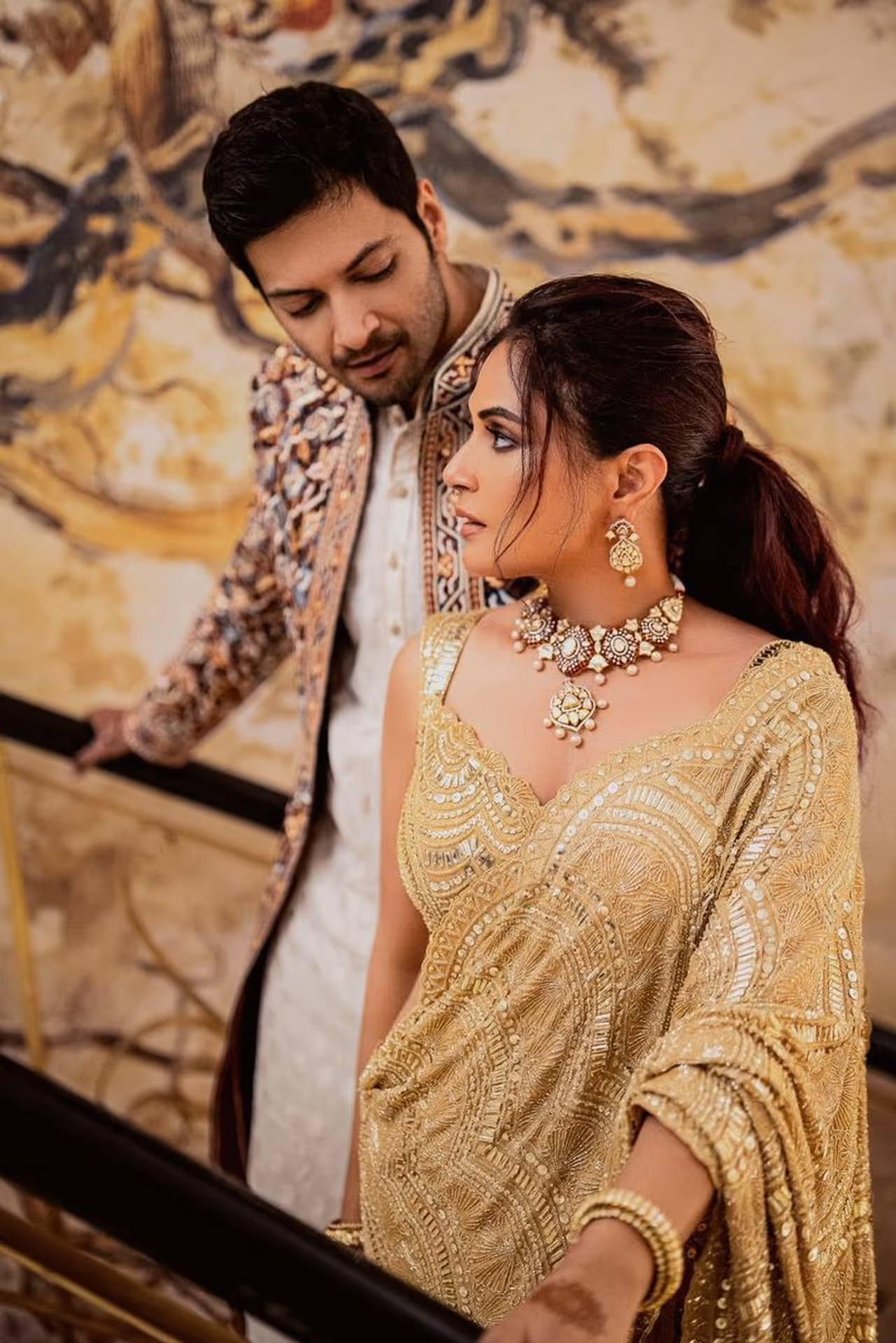 ಪಾರ್ಟಿಯಲ್ಲಿ ರಿಚಾ ಗೋಲ್ಡ್ ಬಣ್ಣದ ಸೀರಿಯಲ್ಲಿ ಕಾಣಿಸಿಕೊಂಡಿದ್ದರು. ಅಲಿ ಬಿಳಿ ಬಣ್ಣದ ಸೇರ್ವಾನಿ ಮೇಲೆ ರೆಡ್ ಎಂಬ್ರಾಯಿಡರಿ ಕೋಟ್ ಧರಿಸಿದ್ದರು. ಇಬ್ಬರು ಕ್ಯಾಮರಾಗೆ ತರಹೇವಾರಿ ಪೋಸ್ ನೀಡಿದ್ದು ಮಸ್ತ್ ಫೋಟೋಗಳು ಅಭಿಮಾನಿಗಳ ಗಮನ ಸೆಳೆಯುತ್ತಿದೆ.
