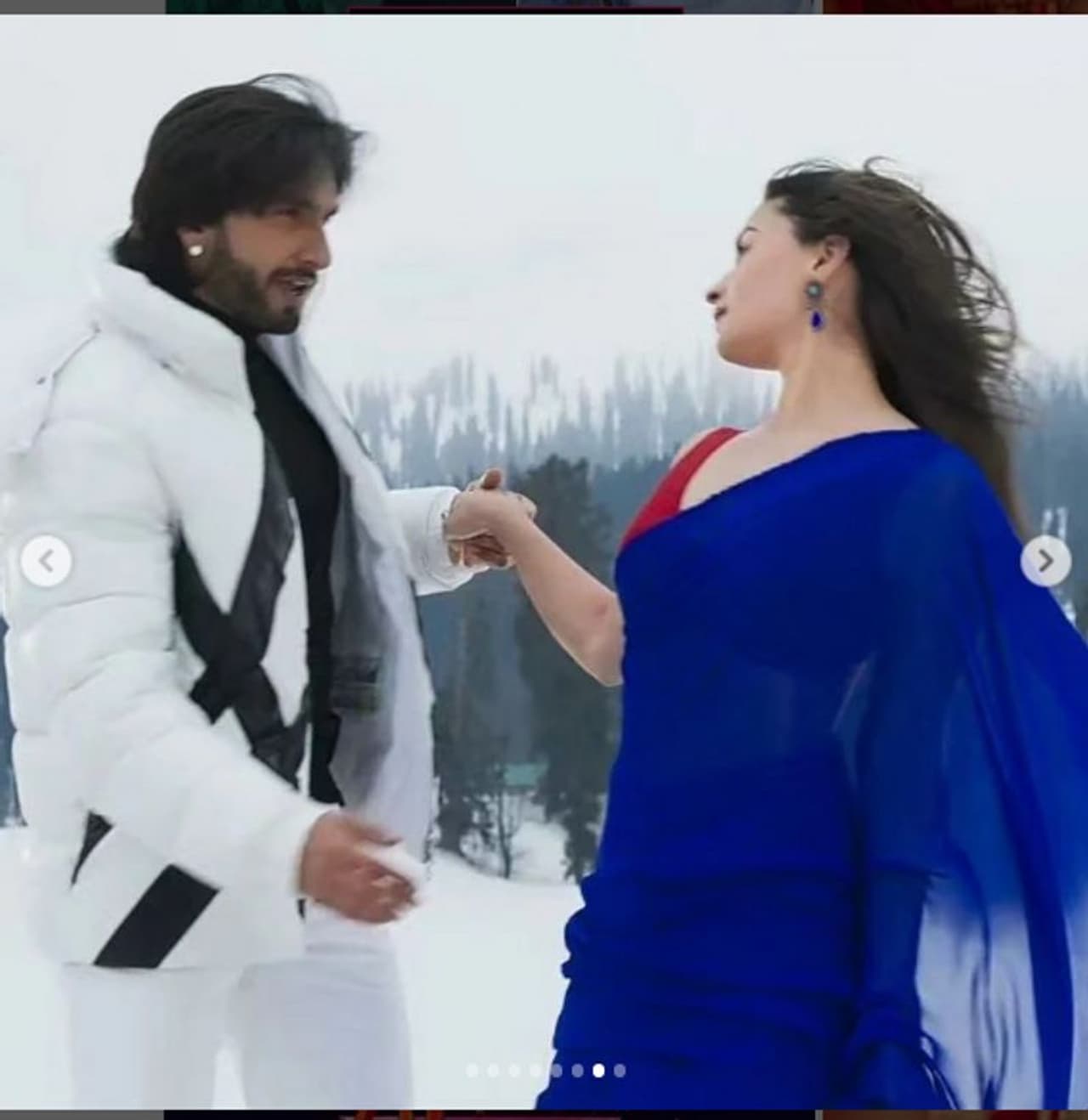 ಆಲಿಯಾ ಭಟ್ ಅವರು ಎಲ್ಲಾ ಸೀರೆ ಲುಕ್ನಲ್ಲಿ ತುಂಬಾ ಸುಂದರವಾಗಿ ಕಾಣಿಸಿಕೊಂಡಿದ್ದಾರೆ ಮತ್ತು ರಣವೀರ್ ಜೊತೆಗೆ ಉತ್ತಮ ಕೆಮಿಸ್ಟ್ರಿ ಹಂಚಿಕೊಂಡಿರುವುದು ನೋಡಬಹುದು.