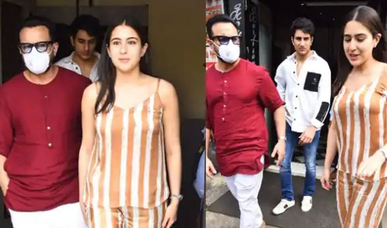 ಸೈಫ್ ಅಲಿ ಖಾನ್ ಕೆಂಪು ಬಣ್ಣದ ಕುರ್ತಾ ಮತ್ತು ಬಿಳಿ ಪೈಜಾಮ ಧರಿಸಿದ್ದರು. ಇದರೊಂದಿಗೆ, ಅವರು ಸನ್ಗ್ಲಾಸ್ ಮತ್ತುಮಾಸ್ಕ್ ಸಹ ಧರಿಸಿದ್ದರು. ಅದೇ ಸಮಯದಲ್ಲಿ, ಸಾರಾ ಅಲಿ ಖಾನ್ ಪೀಚ್ ಮತ್ತು ಸ್ಟ್ರೈಪ್ ಉಡುಪನ್ನು ಧರಿಸಿದ್ದರು. ಮಿನಿಮಲ್ ಮೇಕಪ್ ನಲ್ಲಿ ತುಂಬಾ ಸುಂದರವಾಗಿ ಕಾಣುತ್ತಿದ್ದರು. ಸಾರಾ ಆಲಿ ಖಾನ್ ಅವರು ತನ್ನ ತಂದೆಯ ಜೊತೆ ಮಾತನಾಡುತ್ತಾ ರೆಸ್ಟೋರೆಂಟ್ನಿಂದ ಹೊರಬಂದ ಸಮಯದಲ್ಲಿ ಪಾಪಾರಾಜಿ ಕ್ಯಾಮಾರದಲ್ಲಿ ಸೆರೆಯಾದರು.