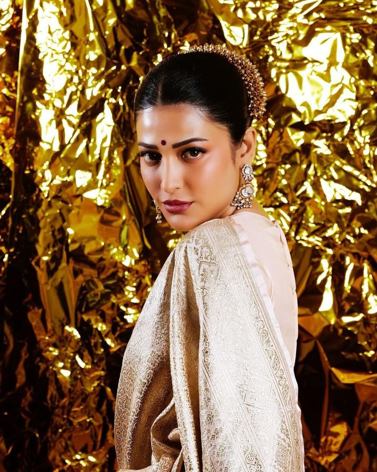 ಗೌರಮ್ಮನ ಹಾಗೇ ಮೈ ತುಂಬಾ ಸೀರೆಯುಟ್ಟ ಕಮಲ್ ಪುತ್ರಿ ಶ್ರುತಿ ಹಾಸನ್: ಈ ಬದಲಾವಣೆಗೆ ಕಾರಣವೇನು ಎಂದ ಫ್ಯಾನ್ಸ್!