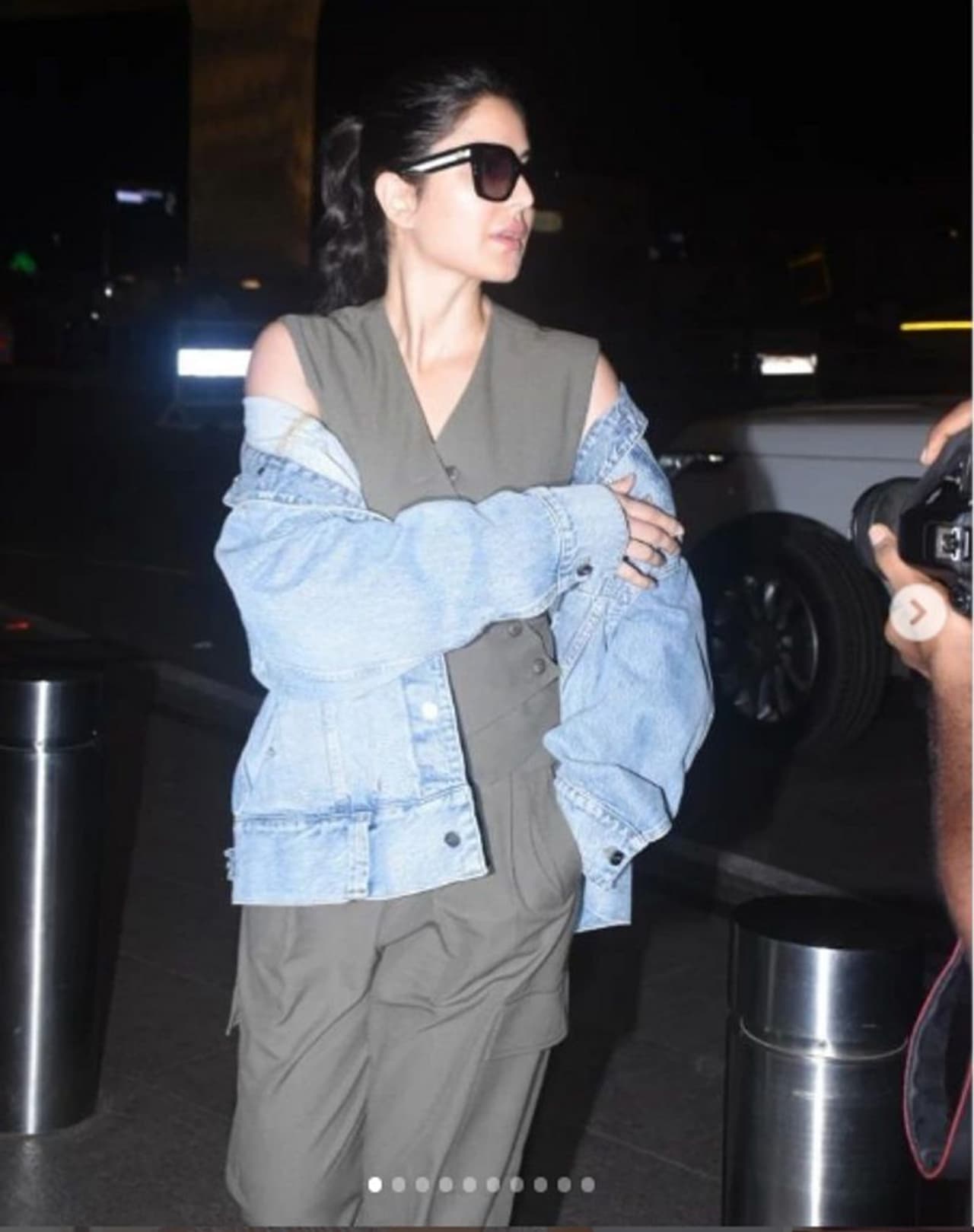 ಕತ್ರಿನಾ ಕೈಫ್ ಕೋ-ಆರ್ಡ್ ಸೆಟ್ ಧರಿಸಿದ್ದರು ಮತ್ತು ಅದರ ಮೇಲೆ ಡೆನಿಮ್ ಜಾಕೆಟ್ ಧರಿಸಿದ್ದರು. ಆದರೆ ಜಾಕೆಟ್ ಅನ್ನು ಸಂಪೂರ್ಣವಾಗಿ ಭುಜದ ಮೇಲೆ ಧರಿಸದೇ, ಅಫ್ ಶೋಲ್ಡರ್ ಮಾಡಿಕೊಂಡಿದ್ದರು.