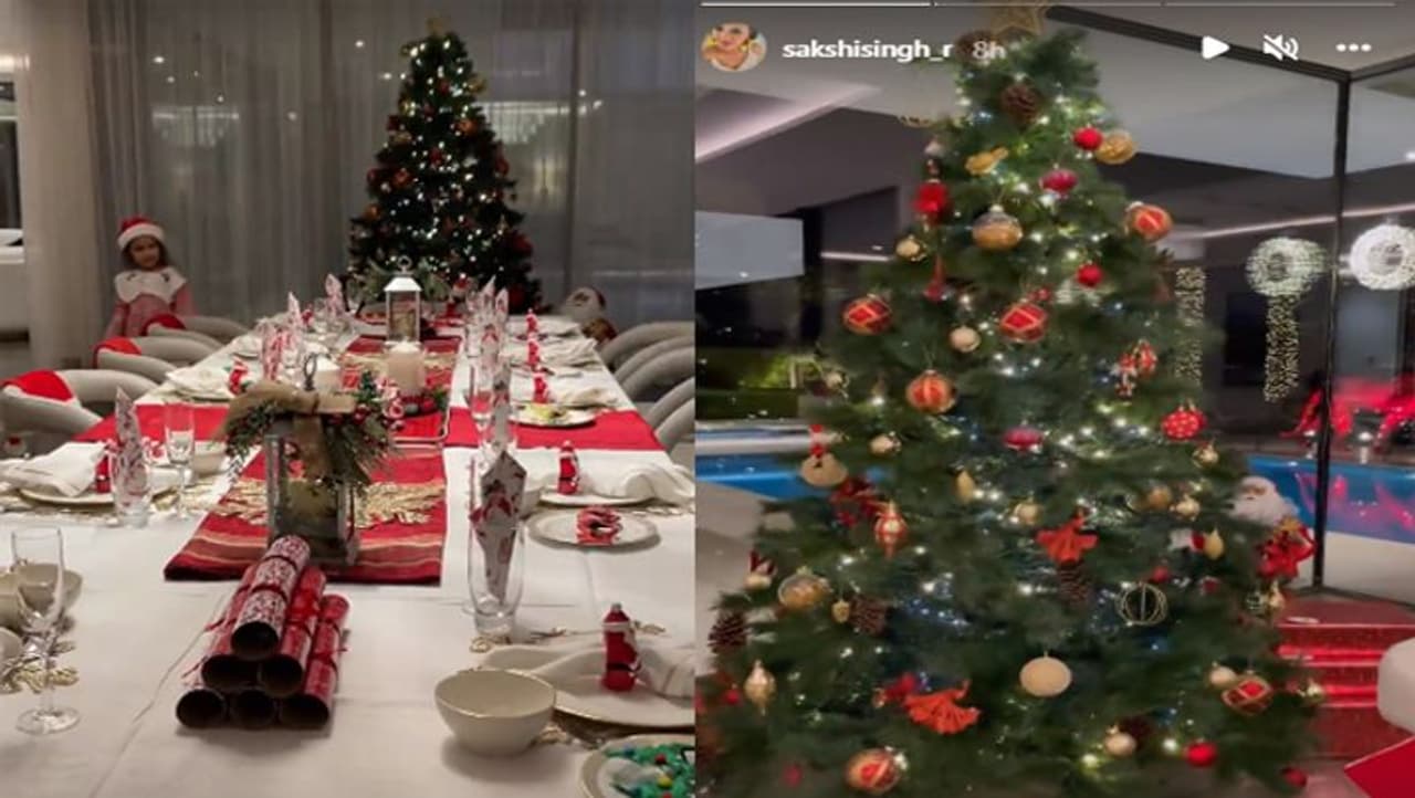 ಮಹೇಂದ್ರ ಸಿಂಗ್ ಧೋನಿ: ಭಾರತ ಕ್ರಿಕೆಟ್ ತಂಡದ ಮಾಜಿ ನಾಯಕ ಮಹೇಂದ್ರ ಸಿಂಗ್ ಧೋನಿ ಸದ್ಯ ಕುಟುಂಬ ಸಮೇತ ದುಬೈನಲ್ಲಿ ಹಾಲಿಡೇ ಮಾಡುತ್ತಿದ್ದಾರೆ. ಅವರ ಪತ್ನಿ ಸಾಕ್ಷಿ ಧೋನಿ ಇನ್ಸ್ಟಾ ಸ್ಟೋರಿಯಲ್ಲಿ ಕ್ರಿಸ್ಮಸ್ ಆಚರಣೆಯ ವಿಡಿಯೋವನ್ನು ಹಂಚಿಕೊಂಡಿದ್ದಾರೆ. ಇದರಲ್ಲಿ ಅವರ ಮಗಳು ಸಾಂತನ ಕೆಂಪು ಟೋಪಿ ಧರಿಸಿ ಕಾಣಿಸಿಕೊಂಡಿದ್ದಾಳೆ.