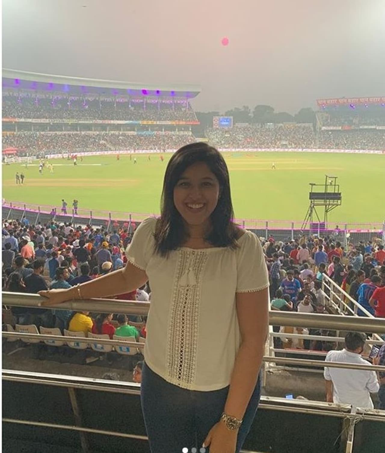 ಆಶಿತಾ ಅವರು ತಮ್ಮ ಅಧಿಕೃತ ಇನ್ಸ್ಟಾಗ್ರಾಮ್ ಖಾತೆಯಲ್ಲಿ ಪಂದ್ಯದ ಸಮಯದಲ್ಲಿ ತಮ್ಮ ಫೋಟೋವನ್ನು ಪೋಸ್ಟ್ ಮಾಡಿದ್ದಾರೆ. ಇದರಲ್ಲಿ ಅವರು ಸ್ಟ್ಯಾಂಡ್ನಲ್ಲಿ ನಿಂತುಕೊಂಡು ನೀಲಿ ಬಣ್ಣದ ಅಗಲವಾದ ಲೆಗ್ ಜೀನ್ಸ್ನೊಂದಿಗೆ ಬಿಳಿ ಟಾಪ್ ಧರಿಸಿ ಸ್ಟೈಲಿಶ್ ಆಗಿ ಪೋಸ್ ನೀಡುತ್ತಿರುವುದನ್ನು ಕಾಣಬಹುದು.