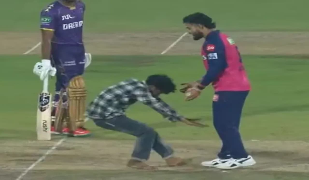 ಈ ಮ್ಯಾಚ್ನಲ್ಲಿ ರಿಯಾನ್ ಪರಾಗ್ ಬೌಲಿಂಗ್ ಮಾಡ್ತಿದ್ರು. ಆಗ ಅಭಿಮಾನಿ ಗ್ರೌಂಡ್ಗೆ ನುಗ್ಗಿ ಕಾಲ್ಗೆ ಬಿದ್ದ. ಸೆಕ್ಯೂರಿಟಿ ಸಿಬ್ಬಂದಿ ಆತನನ್ನ ಹೊರಗೆ ಕಳಿಸಿದ್ರು. ರಿಯಾನ್ ಪರಾಗ್ ದುಡ್ಡು ಕೊಟ್ಟು ಕಾಲ್ಗೆ ಬೀಳಿಸಿದ್ರಂತೆ. ಹುಡುಗನಿಗೆ 10,000 ರೂಪಾಯಿ ಕೊಟ್ಟಿದ್ದಾರೆ ಎಂದು ನೆಟ್ಟಿಗರು ಟ್ರೋಲ್ ಮಾಡುತ್ತಿದ್ದಾರೆ