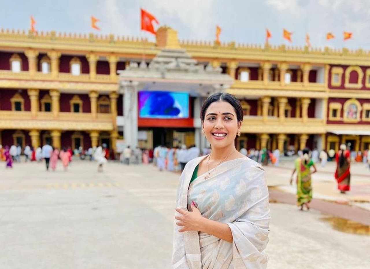ಮಂತ್ರಾಲಯಕ್ಕೆ ಭೇಟಿ ನೀಡಿದ ಸಾರಾ ಅಣ್ಣಯ್ಯ: ಸೀರೆಯುಟ್ಟು ರಾಯರ ದರ್ಶನ ಪಡೆದ ನಟಿ