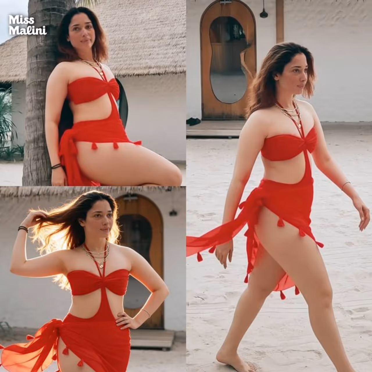 ಇತ್ತೀಚೆಗೆ ತಮನ್ನಾ ಅವರ ಕೆಲವು ಫೋಟೋಗಳು ಸಾಮಾಜಿಕ ಮಾಧ್ಯಮದಲ್ಲಿ ವೈರಲ್ ಆಗಿವೆ. ಇವುಗಳಲ್ಲಿ ಅವರು ಸುಂದರವಾದ ಕೆಂಪು ಈಜುಡುಗೆಯಲ್ಲಿ ಕಾಣಿಸಿಕೊಂಡಿದ್ದಾರೆ. ಈ ಈಜುಡುಗೆ ಸಖತ್ ಸ್ಟೈಲಿಶ್ ಆಗಿದ್ದು, ಟಸೆಲ್ ವಿನ್ಯಾಸ ಮತ್ತು ಬದಿಯಲ್ಲಿ ಡೀಪ್ ಕಟ್ ಹೊಂದಿದೆ.