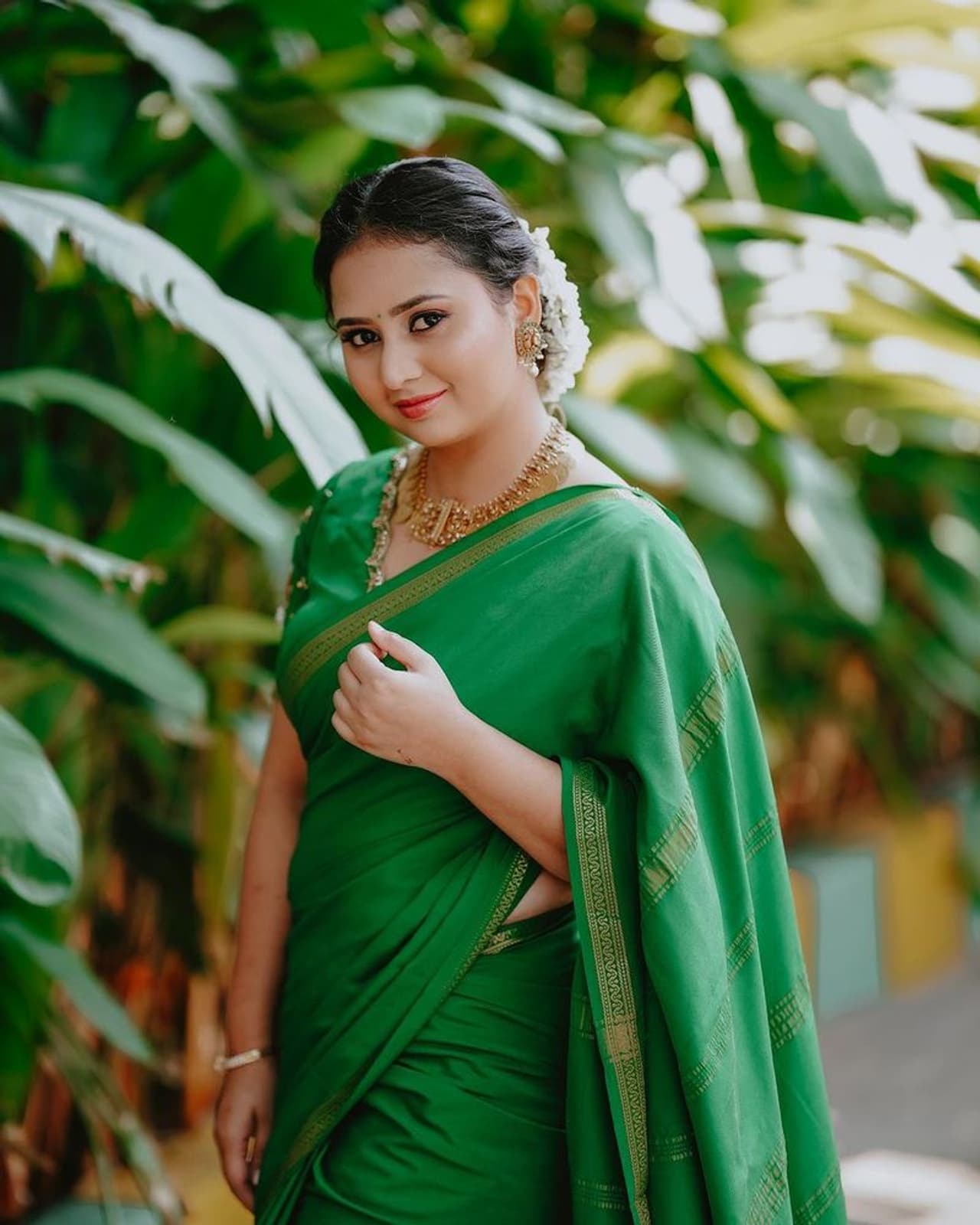 ಹಸಿರು ಸೀರೆಯಲ್ಲಿ ದೇವತೆಯಂತೆ ಮಿಂಚಿದ ನಟಿ ಅಮೂಲ್ಯ, ಮುದ್ದು ನಗುವಿಗೆ ಮನಸೋತ್ವಿ ಎಂದ ಫ್ಯಾನ್ಸ್