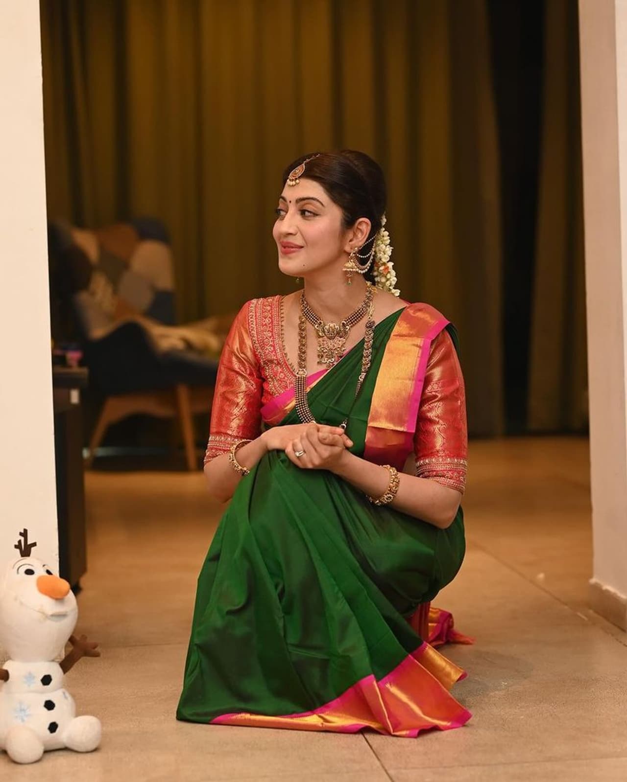 ಪ್ರಣೀತಾ ಸುಭಾಷ್, ಸೋಷಿಯಲ್ ಮೀಡಿಯಾದಲ್ಲಿ ಯಾವಾಗ್ಲೂ ತಮ್ಮ ಟ್ರೆಡಿಶನಲ್ ಮತ್ತು ಮಾಡರ್ನ್ ಫೋಟೋಗಳನ್ನು ಶೇರ್ ಮಾಡಿಕೊಳ್ಳುತ್ತಾರೆ. ಹಾಗೆಯೇ ಇತ್ತೀಚಿಗೆ ಗ್ರ್ಯಾಂಡ್ ರೇಷ್ಮೆ ಸೀರೆಯುಟ್ಟು, ಆಭರಣಗಳನ್ನು ತೊಟ್ಟು ಸಖತ್ತಾಗಿ ಮಿಂಚಿದ್ದಾರೆ.