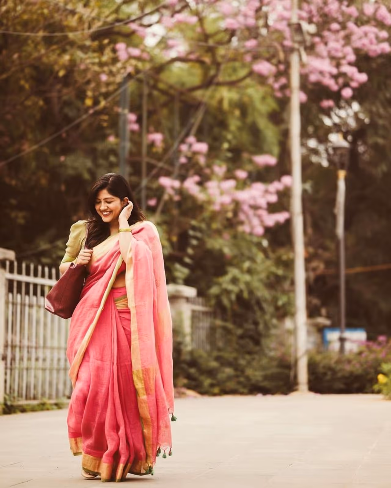 ಬೆಂಗಳೂರಿನಲ್ಲಿ ಅರಳಿ ನಿಂತ ಪಿಂಕ್ ಹೂಗಳ ಮಧ್ಯೆ 'ಸೀತಾರಾಮ' ನಟಿ ಪ್ರಿಯಾ, ಚಂದನದ ಗೊಂಬೆ ಎಂದ ಫ್ಯಾನ್ಸ್