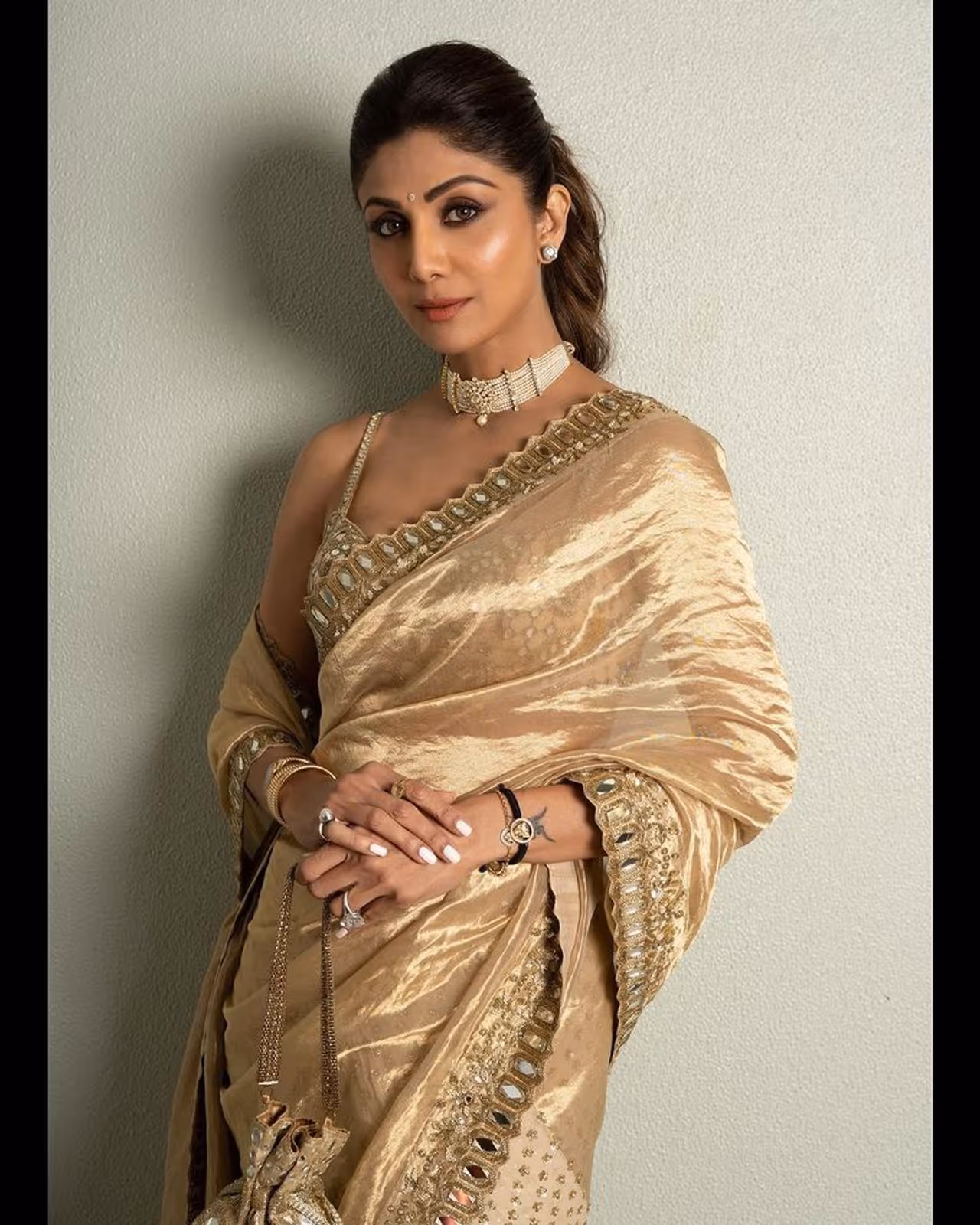 ಗೋಲ್ಡನ್ ಸ್ಯಾರಿಯಲ್ಲಿ ಮಿಂಚಿದ ಶಿಲ್ಪಾ ಶೆಟ್ಟಿ, ಯೋಗ ಗರ್ಲ್ ಫಿಗರ್ ಸೂಪರ್ ಎಂದ ಫ್ಯಾನ್ಸ್