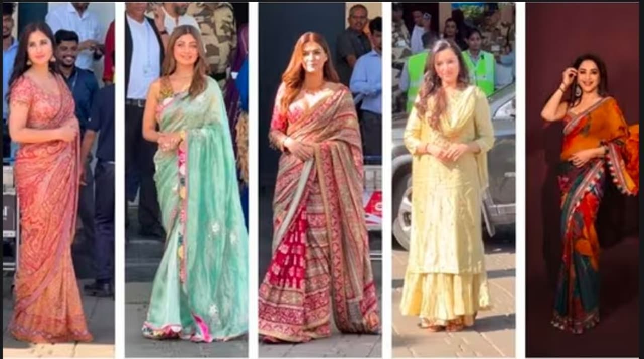 ಇಲ್ಲಿ ಕತ್ರೀನಾ ಕೈಫ್, ಶಿಲ್ಪಾ ಶೆಟ್ಟಿ, ಕೃತಿ ಸನನ್ ಸೀರೆ ಧರಿಸಿ ಮಿಂಚಿದ್ದರೆ, ಶ್ರದ್ಧಾ ಕಪೂರ್, ರಶ್ಮಿಕಾ ಮಂದಣ್ಣ ಸಂಪ್ರದಾಯಿಕ ಚೂಡಿಧಾರ್ ದರಿಸಿ ಮಿಂಚಿದ್ದಾರೆ. ಅವರ ಸುಂದರ ಫೋಟೋಗಳು ಇಲ್ಲಿವೆ.