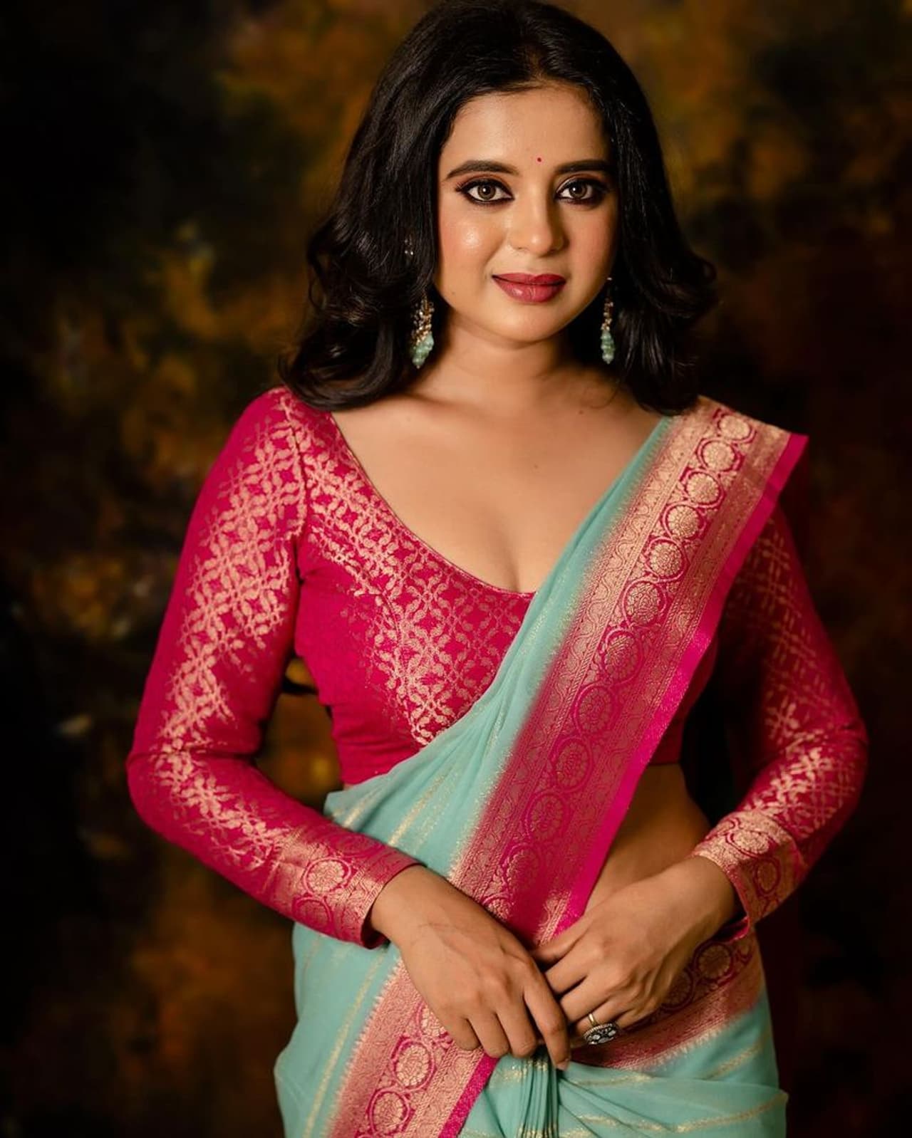 ಇತ್ತೀಚಿಗೆ ಸಂಪೂರ್ಣ ಸಾಂಪ್ರದಾಯಿಕ ಲುಕ್ನಲ್ಲಿ ಪೋಟೋಗಳನ್ನು ಶೇರ್ ಮಾಡಿದ್ದಾರೆ. ಪಿಂಕ್ ಹಾಗೂ ಬ್ಲೂ ಕಲರ್ ಸೀರೆಯುಟಟು ಕಾವ್ಯಶ್ರೀ ಮುದ್ದಾಗಿ ಫೋಸ್ ಕೊಟ್ಟಿದ್ದಾರೆ.
