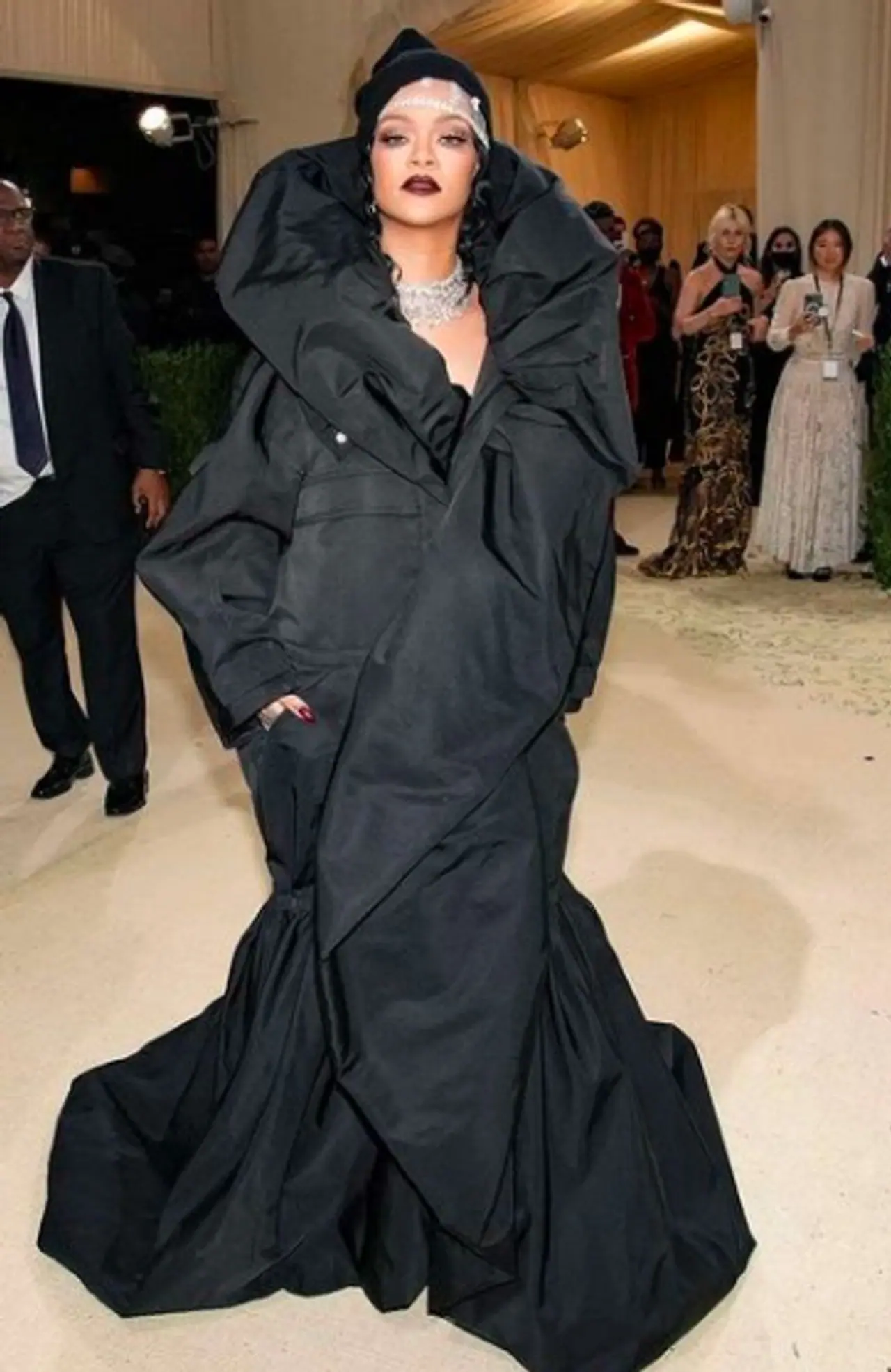ರಿಹಾನ್ನಾ ಮೆಟ್ ಗಾಲಾದಲ್ಲಿ ತನ್ನ ಗೆಳೆಯ ರಾಕಿಯೊಂದಿಗೆ ಕಾಣಿಸಿಕೊಂಡರು. ಕಪ್ಪು ಉಡುಗೆ ಧರಿಸಿ ಆಭರಣದ ಟೋಪಿ ಕಾಣುವ ಕಪ್ಪು ಬೀನಿಯನ್ನು ಧರಿಸಿದ್ದರು