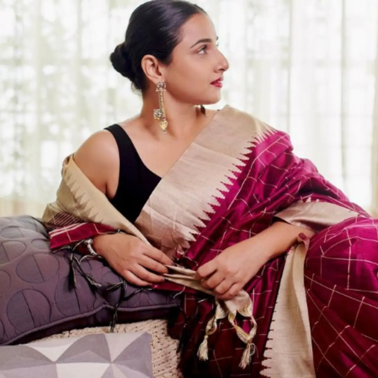 ವಿದ್ಯಾಬಾಲನ್ ಅವರ ವೈಯುಕ್ತಿಕ ಶೈಲಿಯೇ ಆಕೆ ಪರಮ ಸೀರೆ ಪ್ರೇಮಿ ಎಂಬುದಾಗಿದೆ. ಆಕೆ ಯಾವಾಗಲೂ ಸ್ಟೈಲಿಶ್ ಸೀರೆಯಲ್ಲಿ ಕಾಣಿಸಿಕೊಳ್ಳುತ್ತಾರೆ. 2021 ರ ರಾಷ್ಟ್ರೀಯ ಕೈಮಗ್ಗ ದಿನದ ನೆನಪಿಗಾಗಿ, ಅವರು ಹೌಸ್ ಆಫ್ ಉರ್ಮಿಯಿಂದ ಈ ಗುಲಾಬಿ ಬಣ್ಣದ ಚೆಕ್ಡ್ ರಾ ಸಿಲ್ಕ್ ಟೆಂಪಲ್ ಬಾರ್ಡರ್ ಸೀರೆಯನ್ನು ಧರಿಸಿರುವುದನ್ನು ನೋಡಬಹುದು.