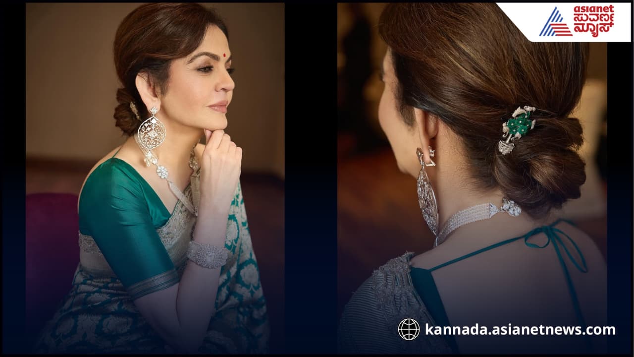 ಹೊಸ ಹೇರ್ಸ್ಟೈಲ್, ಹೊಸ ವಿನ್ಯಾಸ, ಹೊಸ ಡೈಮಂಡ್ ಬ್ರಾಸ್ಲೆಟ್ ಹಾಗೂ ಹೊಸ ಬನಾರಸ್ ಸೇರಿ ಮೂಲಕ ನೀತಾ ಅಂಬಾನಿ ಫೋಟೋಶೂಟ್ ಮಾಡಿಸಿದ್ದಾರೆ. ನೀತಾ ಅಂಬಾನಿಗೆ ಹೈರ್ ಡೈಸೈನ್ ಮಾಡಿದ ಸೆಲೆಬ್ರೆಟಿ ಹೇರ್ ಸ್ಟೈಲೀಶ್ ಯಿಯಾನ್ನಿ ಸಪತೋರಿ ಕೆಲ ಫೋಟೋಗಳನ್ನು ಹಂಚಿಕೊಂಡಿದ್ದಾರೆ. ಈ ಫೋಟೋಗಳಿಗೆ ಭರ್ಜರಿ ಕಮೆಂಟ್ ವ್ಯಕ್ತವಾಗಿದೆ. ಕಾರಣ ಸೀರೆ, ಹೇರ್ಸ್ಟೈಲ್ ಹಾಗೂ ಆಭರಣ ನೀತಾ ಅಂಬಾನಿ ಸೌಂದರ್ಯ ಹೆಚ್ಚಿಸಿದೆ.