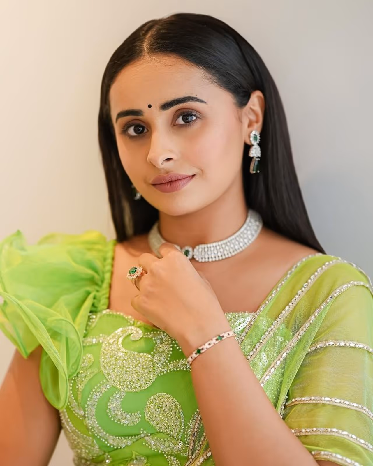 ಸದ್ಯ ಗ್ರೀನ್ ಕಲರ್ ಡ್ರೆಸ್ನಲ್ಲಿ ಮಿಂಚಿದ್ದಾರೆ. ಇದಕ್ಕೆ ವೈಟ್ನಲ್ಲಿ ಡಾರ್ಕ್ ಗ್ರೀನ್ ಪೆಂಡೆಂಟ್ ಇರೋ ಚೋಕರ್ ಹಾಗೂ ಇಯರಿಂಗ್ಸ್ ಧರಿಸಿದ್ದಾರೆ. ಸಿಂಪಲ್ ಮೇಕಪ್ನಲ್ಲಿ ಸಖತ್ ಬ್ಯೂಟಿಫುಲ್ ಆಗಿ ಕಾಣಿಸಿಕೊಂಡಿದ್ದಾರೆ. ನೆಟ್ಟಿಗರು ಇದನ್ನು ನೋಡಿ ನಾನಾ ರೀತಿ ಕಾಮೆಂಟ್ ಮಾಡಿದ್ದಾರೆ.