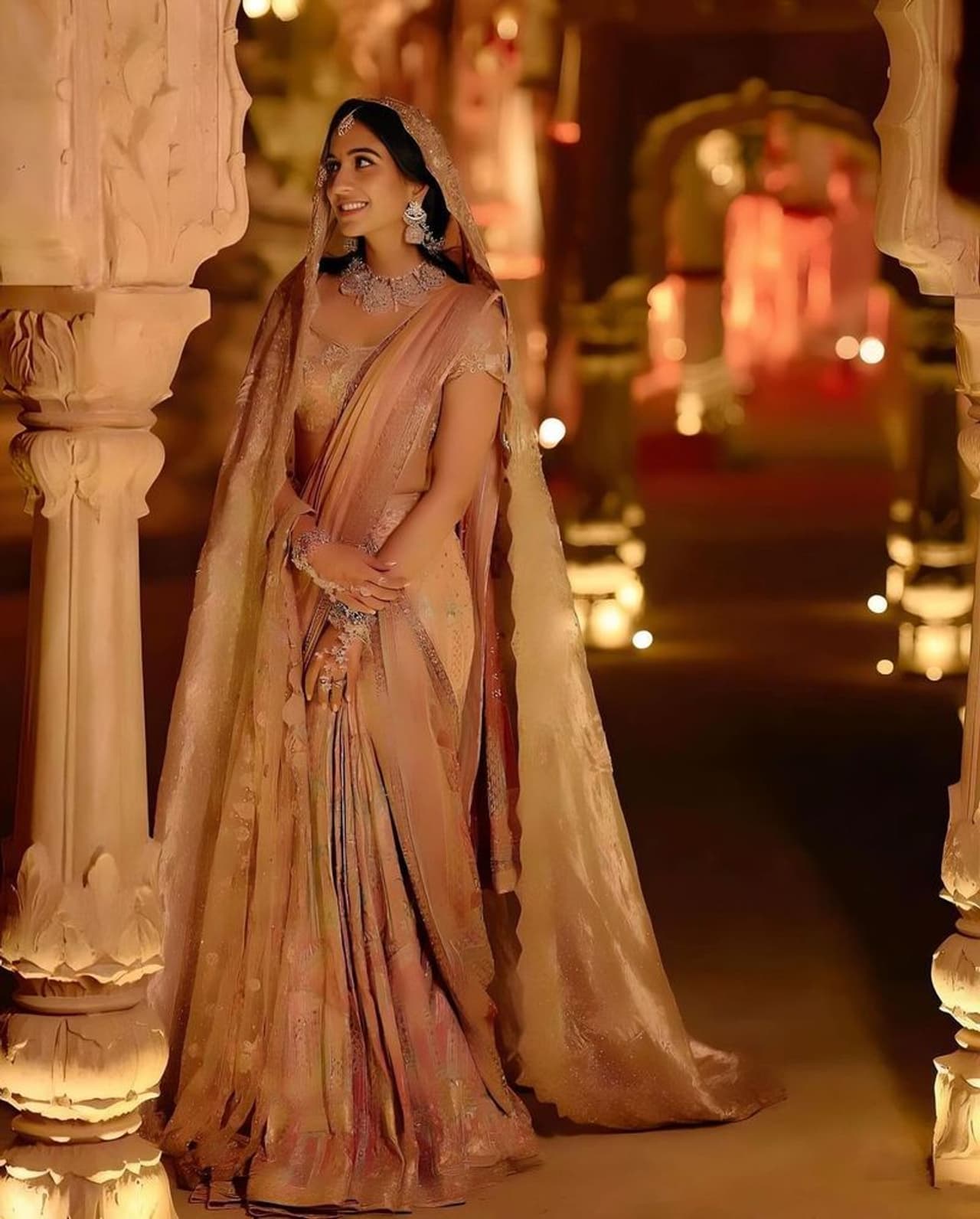 ಅಪ್ಪಟ ಚಿನ್ನದ ದಾರ ಪೋಣಿಸಿದ ದುಪ್ಪಟ್ಟಾದಲ್ಲಿ ದೇವತೆಯಂತೆ ಕಂಗೊಳಿಸಿದ ಅಂಬಾನಿ ಕಿರಿ ಸೊಸೆ!
