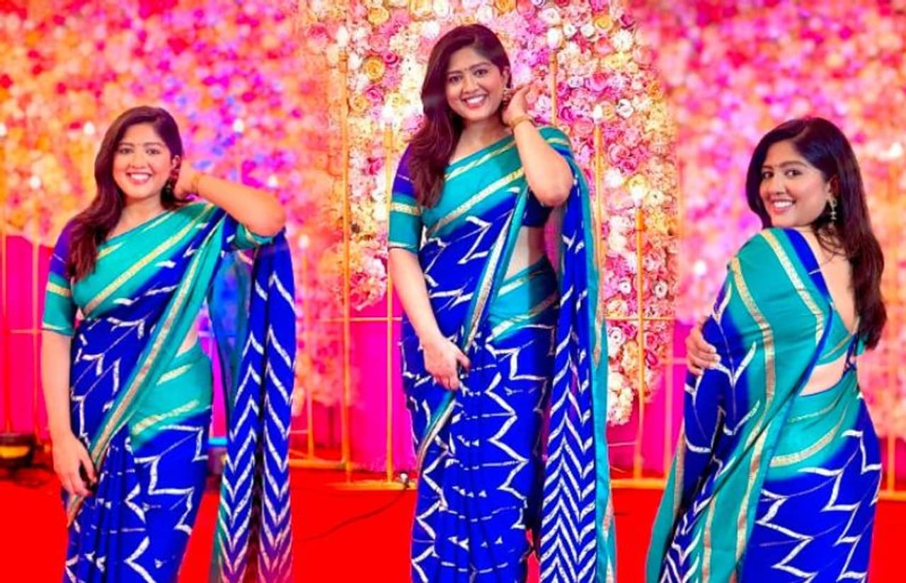 ಡಾರ್ಕ್ ಮತ್ತು ಸ್ಕೈ ಕಲರ್ ಸೀರೆಯುಟ್ಟ ಮೇಘನಾ ಶಂಕರಪ್ಪ ಮುದ್ದಾಗಿ ಫೋಟೋಗೆ ಫೋಸ್ ನೀಡಿದ್ದಾರೆ. ಪಿಂಕ್ ಮತ್ತು ರೆಡ್ ಕಲರ್ನ ಬ್ಯಾಕ್ಗ್ರೌಂಡ್ನಲ್ಲಿ ಸೀರೆಯುಟ್ಟು ಸುಂದರವಾಗಿ ನಗು ಬೀರಿದ್ದಾರೆ.