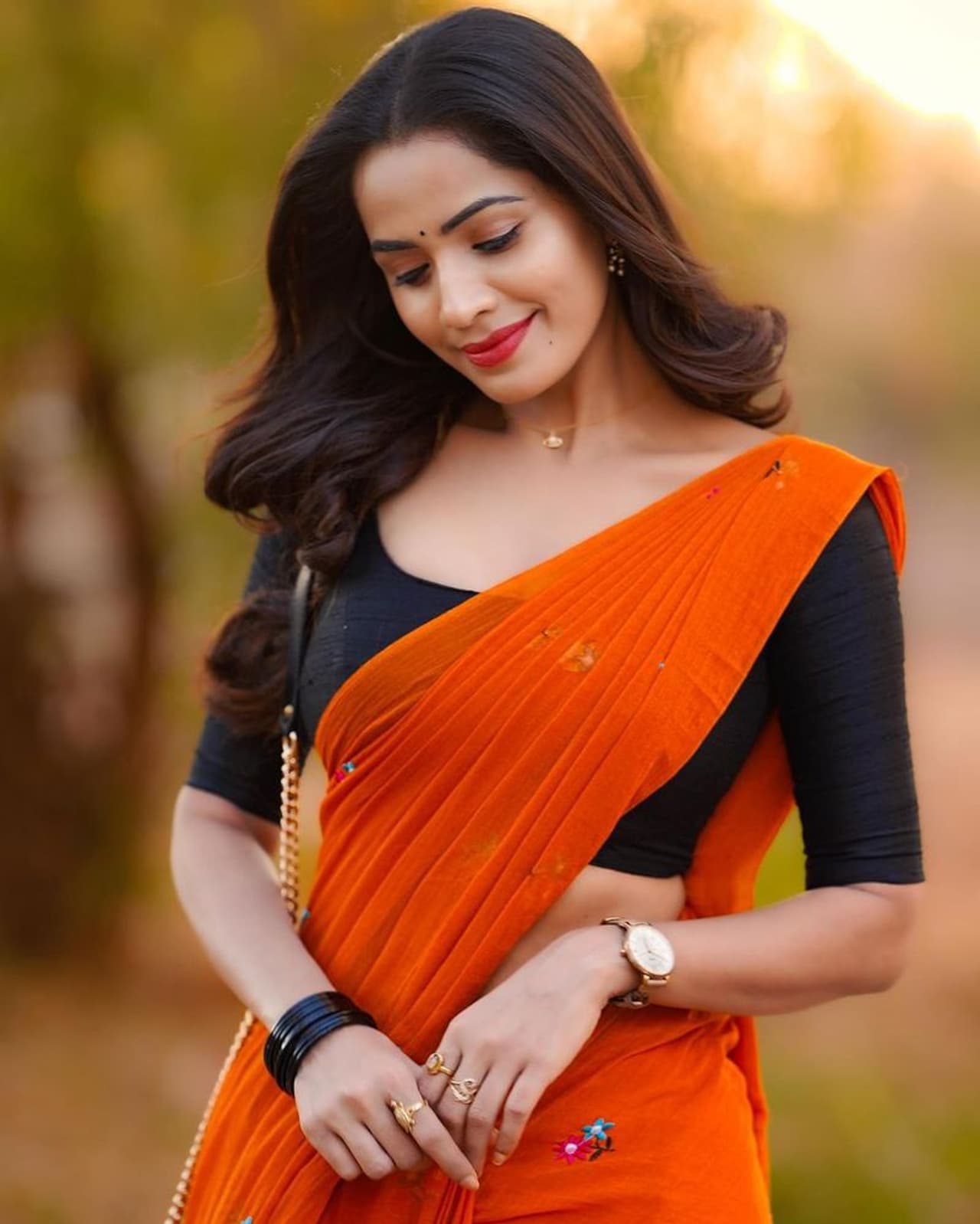 ಕನ್ನಡತಿ ಶೋಭಾ ಶೆಟ್ಟಿ, ತೆಲುಗು ಬಿಗ್ಬಾಸ್ 7ರಲ್ಲಿ ಭಾಗವಹಿಸಿದ ನಂತರ ಹೆಚ್ಚು ಫೇಮಸ್ ಆಗಿದ್ದಾರೆ. ಸೋಷಿಯಲ್ ಮೀಡಿಯಾದಲ್ಲೂ ಹೆಚ್ಚು ಆಕ್ಟಿವ್ ಆಗಿದ್ದಾರೆ. ಆಗಾಗ ಇನ್ಸ್ಟಾಗ್ರಾಂನಲ್ಲಿ ಮಾಡರ್ನ್ ಹಾಗೂ ಟ್ರೆಡಿಶನಲ್ ಲುಕ್ನಲ್ಲಿ ಫೋಟೋಸ್ ಶೇರ್ ಮಾಡುತ್ತಿರುತ್ತಾರೆ. ಹಾಗೆಯೇ ಇತ್ತೀಚಿಗೆ ಆರೆಂಜ್ ಕಲರ್ ಸೀರೆಯುಟ್ಟ ಫೋಟೋಗಳನ್ನು ಶೇರ್ ಮಾಡಿದ್ದಾರೆ.