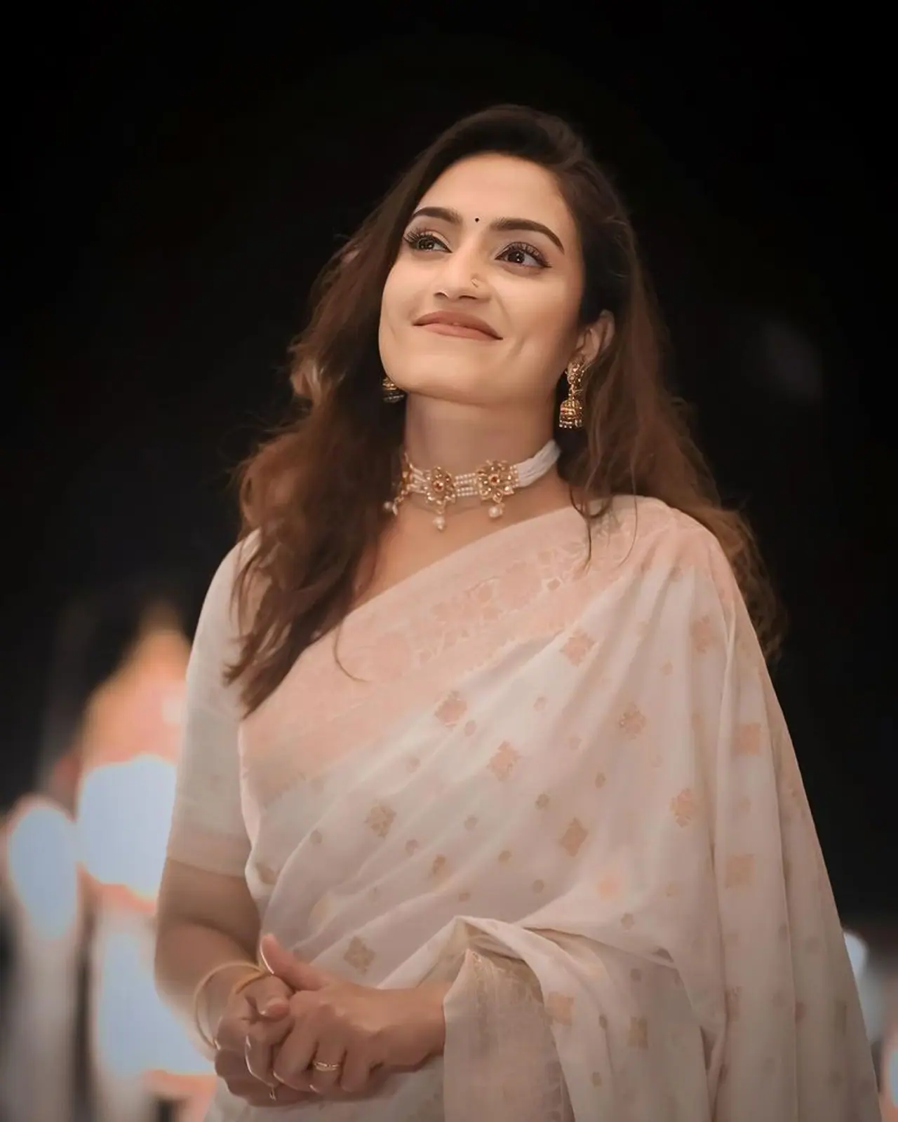 ಬಿಳಿ ಸೀರೆಯಲ್ಲಿ ಮಿಂಚಿದ ವೈಷ್ಣವಿ ಗೌಡ, ಪ್ರೇಮಿಗಳ ದಿನ ವೈಟ್ ಸ್ಯಾರಿ ಯಾಕೆ ಅಂತ ಕೇಳೋದಾ ಫ್ಯಾನ್ಸ್!