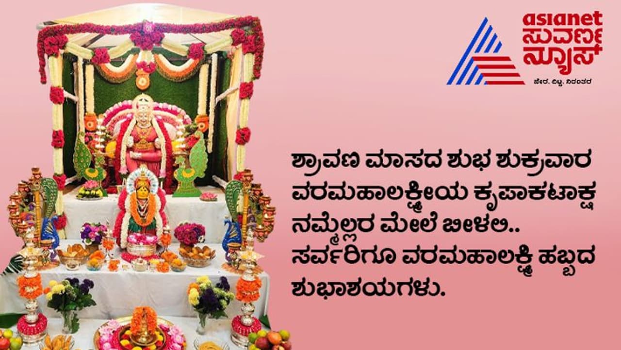 ನಾಡಿನೆಲ್ಲೆಡೆ ವರಮಹಾಲಕ್ಷ್ಮಿ ಹಬ್ಬವನ್ನು ಸಡಗರ ಸಂಭ್ರಮದಿಂದ ಆಚರಿಸಲಾಗುತ್ತಿದೆ. ನಿಮ್ಮ ಪ್ರೀತಿಪಾತ್ರರ ಜೊತೆ ವರಮಹಾಲಕ್ಷ್ಮಿ ಹಬ್ಬದ ಶುಭಾಶಯ ಹಂಚಿಕೊಳ್ಳಿ.