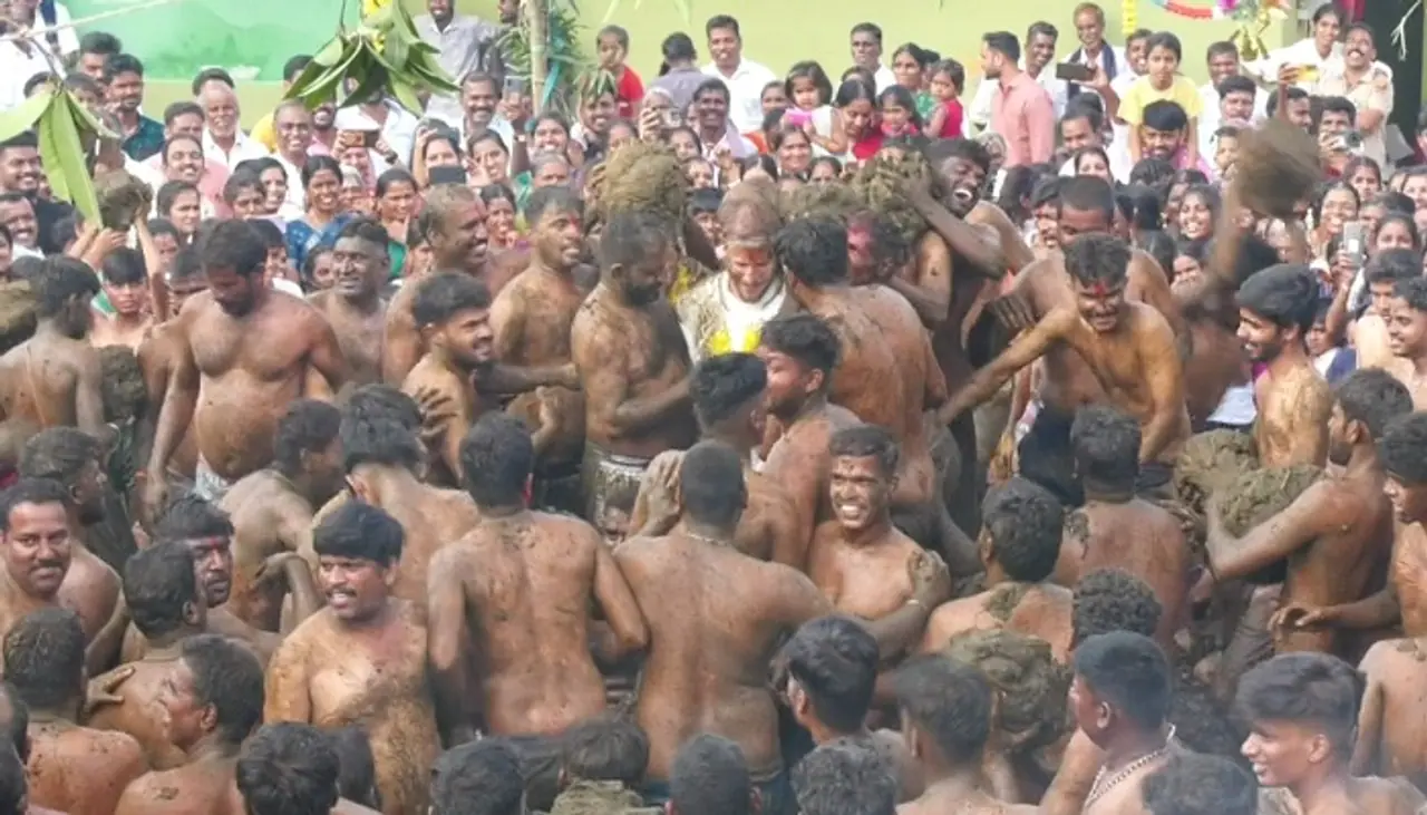 ವಿಶಿಷ್ಠ ಗೊರೆ ಹಬ್ಬಕ್ಕೆ ಸಾಕ್ಷಿಯಾದ ತಮಿಳುನಾಡಿನ ಕನ್ನಡಿಗರು: ಪರಸ್ಪರ ಸಗಣಿ ಎರಚಿ ಹಬ್ಬ ಆಚರಣೆ!