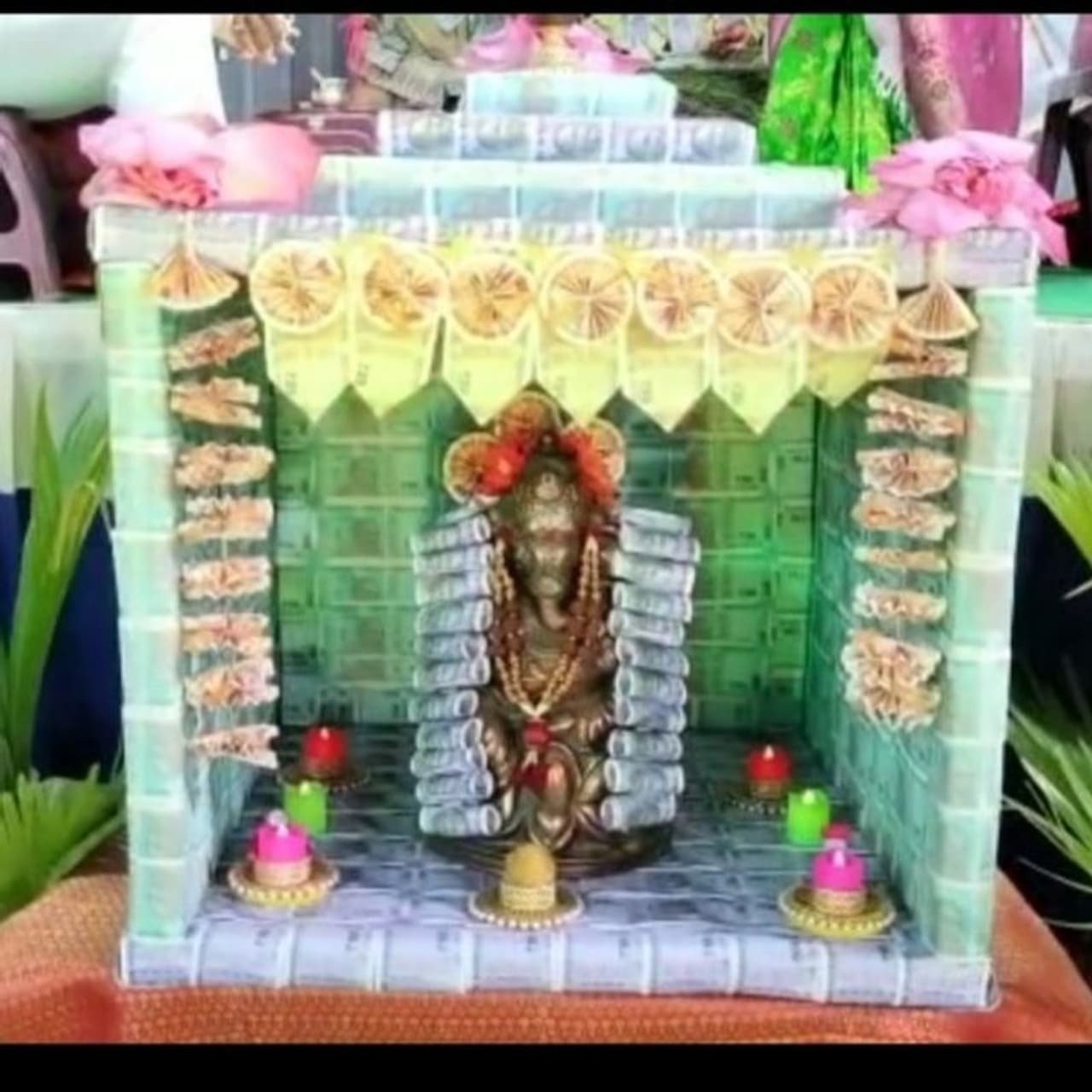 ಒಂದೊಂದು ಪ್ರದೇಶದಲ್ಲಿ ಗಣಪನ ಕೂರಿಸುವ ಒಂದೊಂದು ರೀತಿಯ ಅಲಂಕಾರ ಮಾಡುತ್ತಾರೆ. ಕೆಲವೊಬ್ಬರು ಹೂವಿನಿಂದಲೇ ಅಲಂಕಾರ ಮಾಡಿದರೆ, ಇನ್ನು ಕೆಲವೊಬ್ಬರು ಎಲೆಗಳಿಂದ ಅಲಂಕರಿಸುತ್ತಾರೆ. ಆದರೆ ಇದೆಲ್ಲಕ್ಕಿಂತ ವಿಭಿನ್ನವಾಗಿ ವಾರಂಗಲ್ನಲ್ಲಿ ಗಣೇಶ ಮಂಟಪವನ್ನು ನೋಟುಗಳಿಂದ ಅಲಂಕರಿಸಲಾಗಿದೆ.